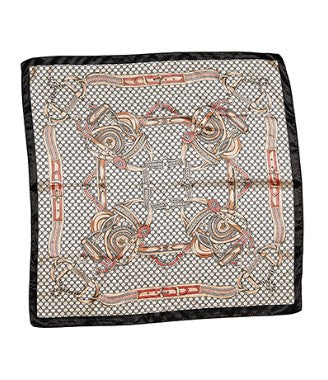 Elevate your everyday look with this elegant chain printed square scarf, designed with a timeless equestrian-inspired motif and a bold black border for a polished finish. The silky satin fabric feels smooth and lightweight, making it easy to style year-round. Wear it tied at the neck, wrapped on your handbag, or styled as a chic hair accessory for an instant touch of sophistication.