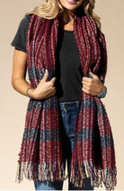 Multi color knit yarn dye soft boucle oblong scarf with fringe accent *100% Acrylic *APPROX. L 78.25" W 25.25" 8.92oz