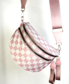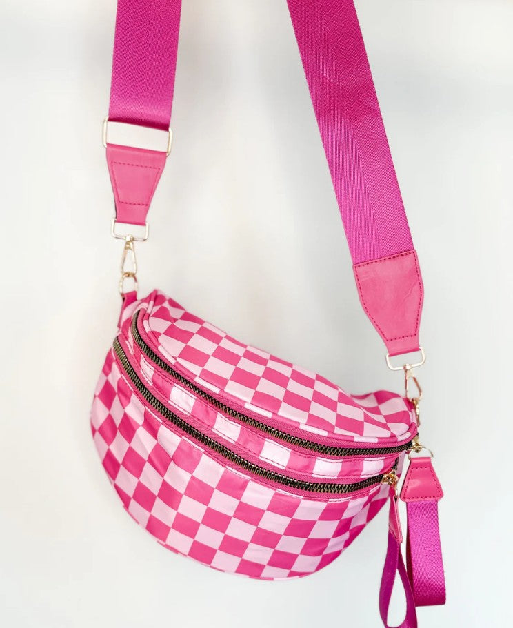 Stay hands-free and stylish with this Crossbody Bag. Designed with a trendy checkered (or leopard) print and a roomy double-zip compartment, this lightweight crossbody keeps your essentials organized while adding a bold pop to any outfit. The adjustable wide strap offers all-day comfort, making it perfect for errands, travel, concerts, and everyday wear.