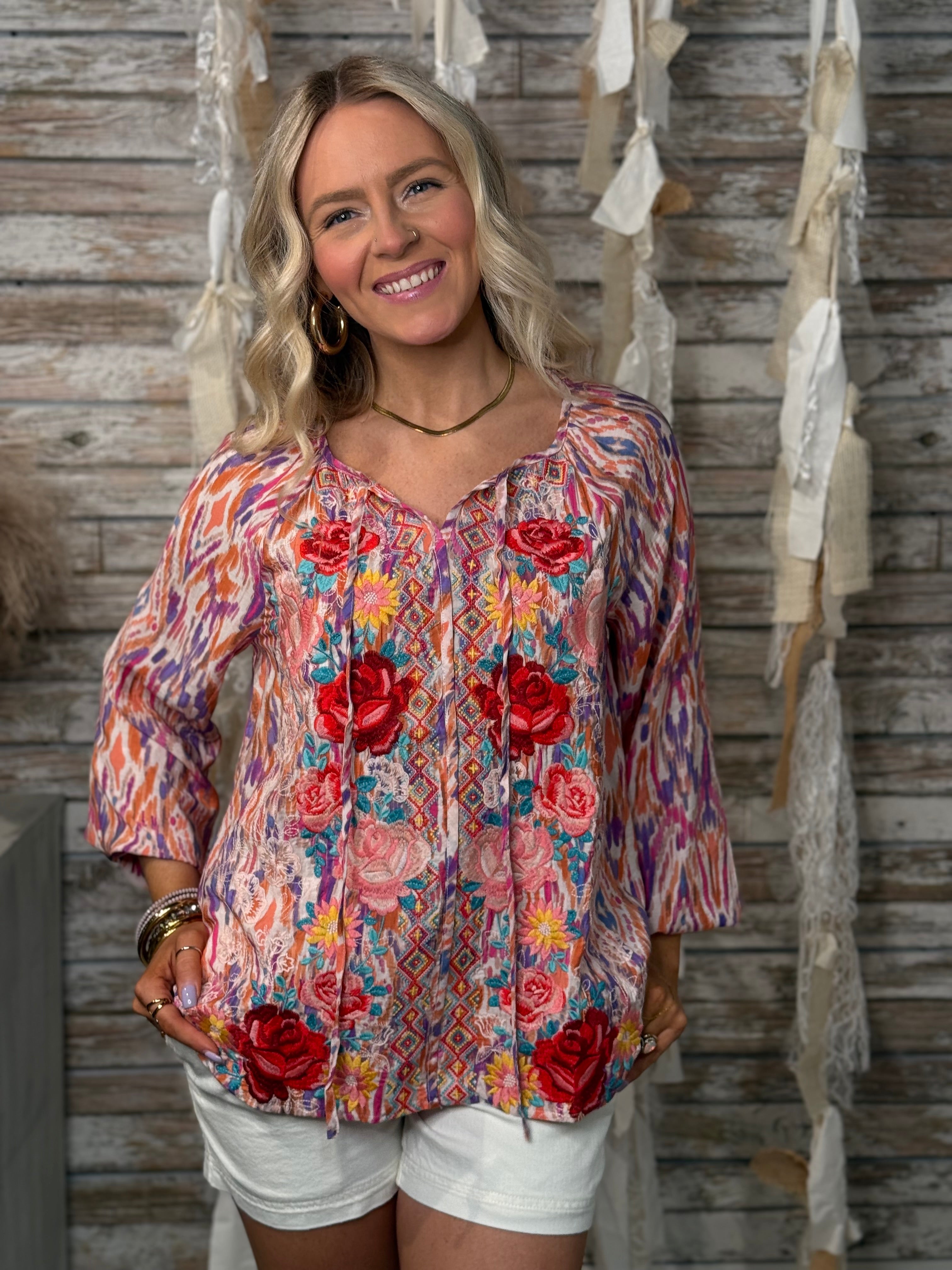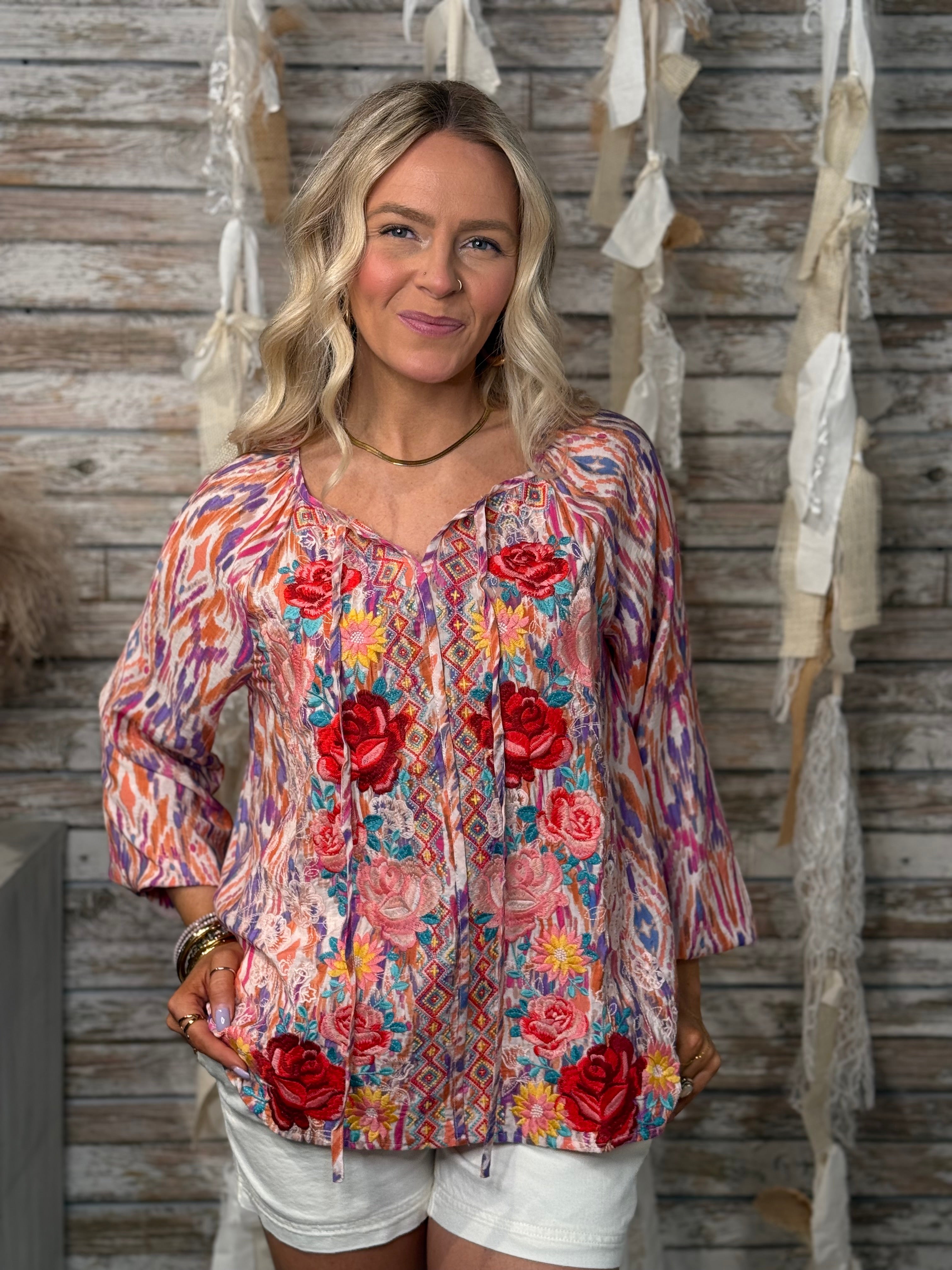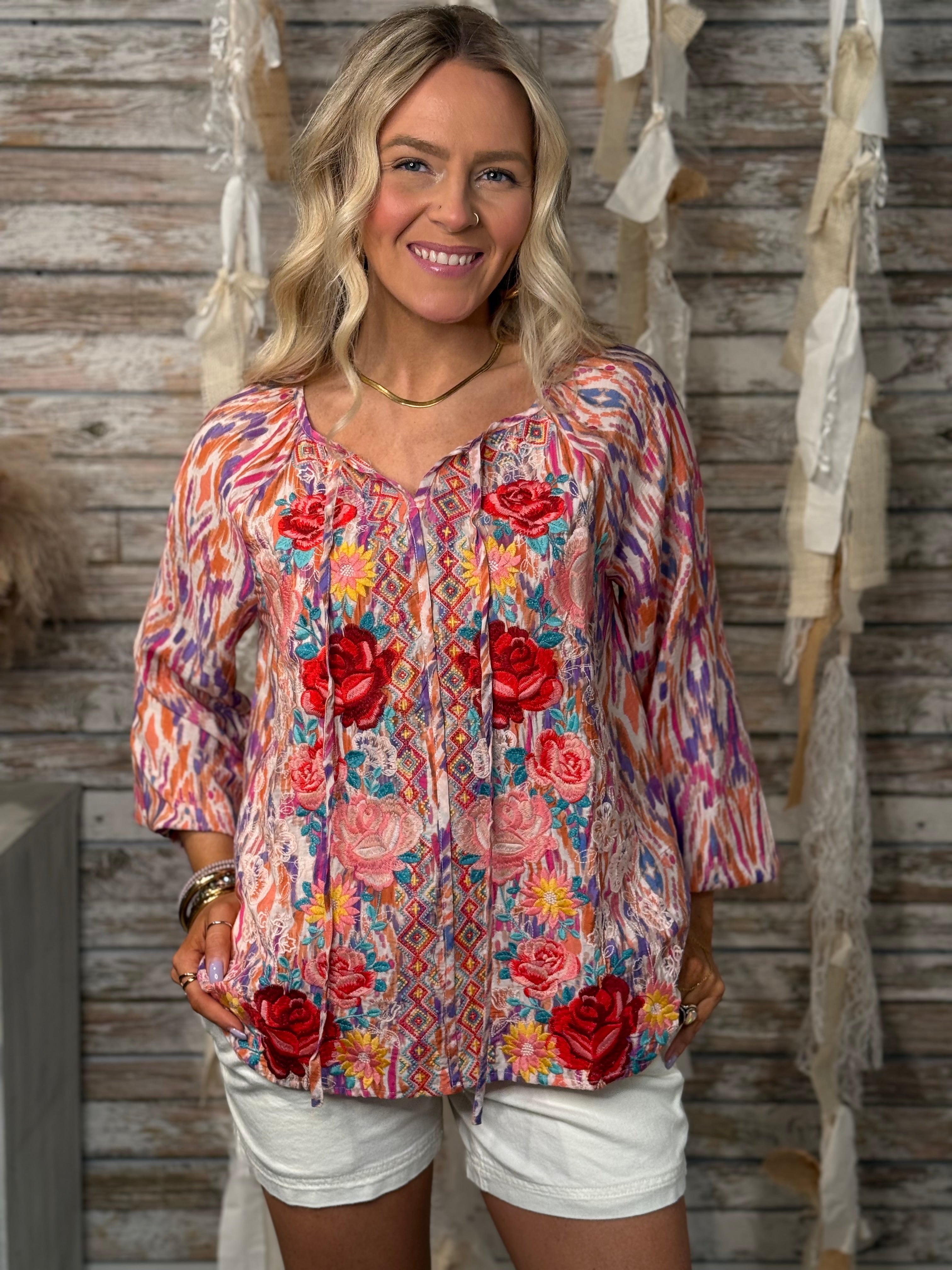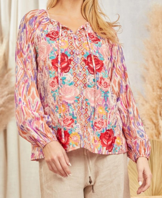 Women’s Floral Chiffon Blouse – Black Sheer Sleeve V-Neck Top