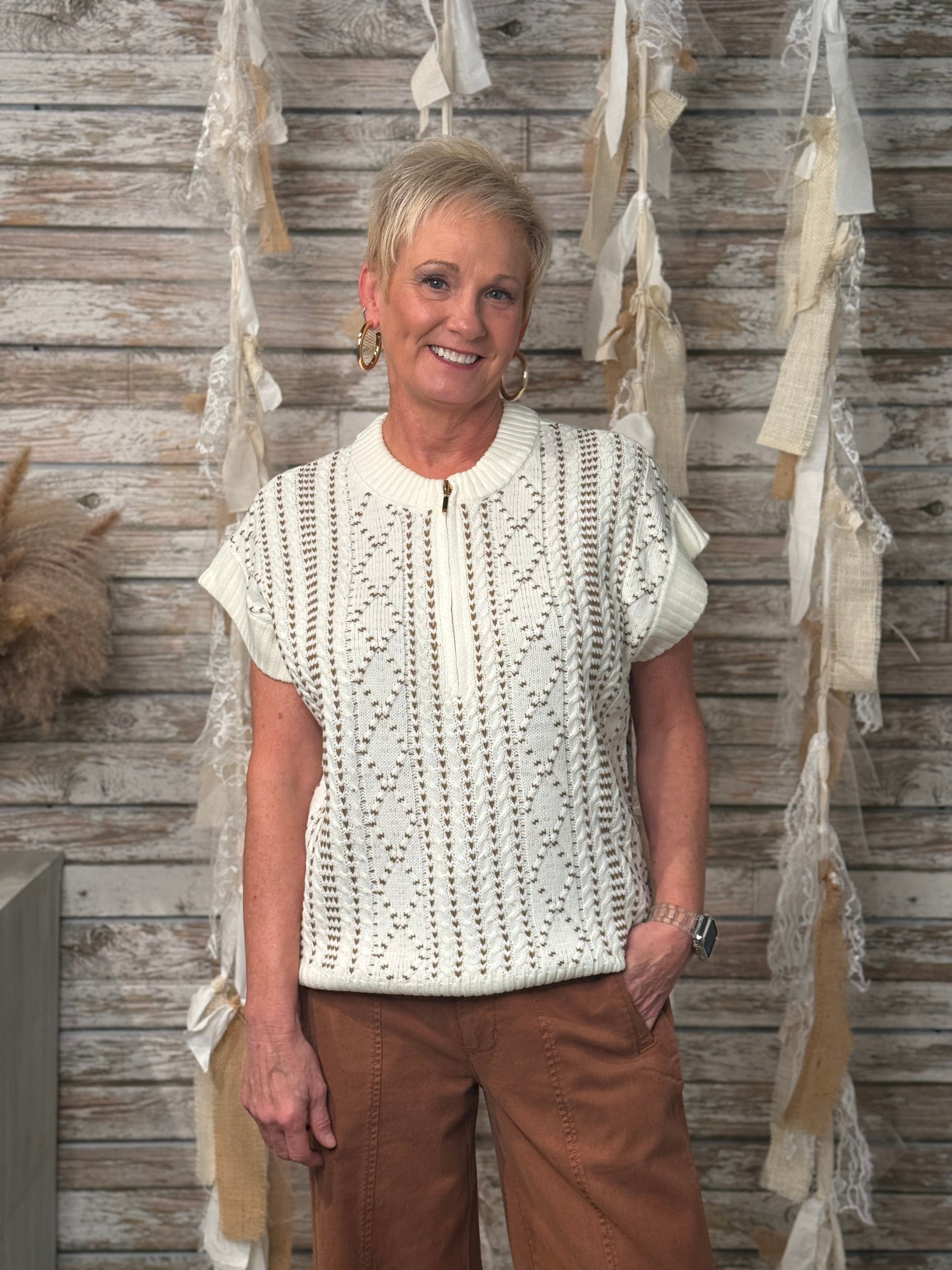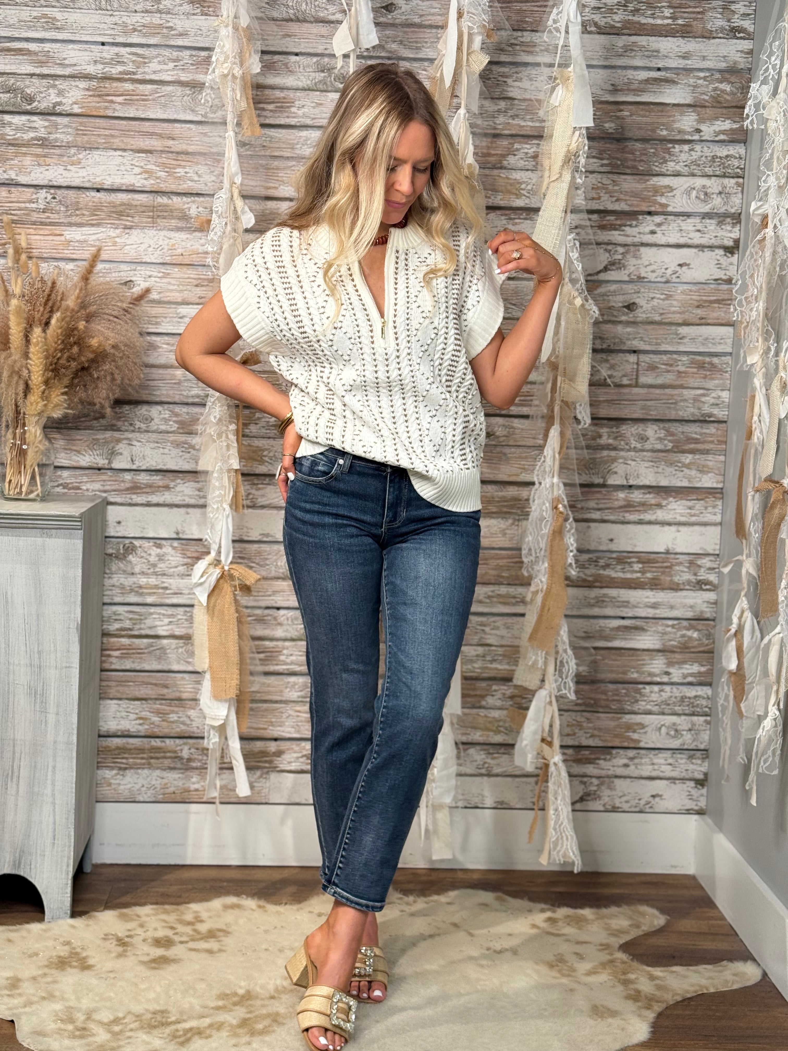 Women’s Jewel Neck Sweater – Short Sleeve Dressy Knit Top