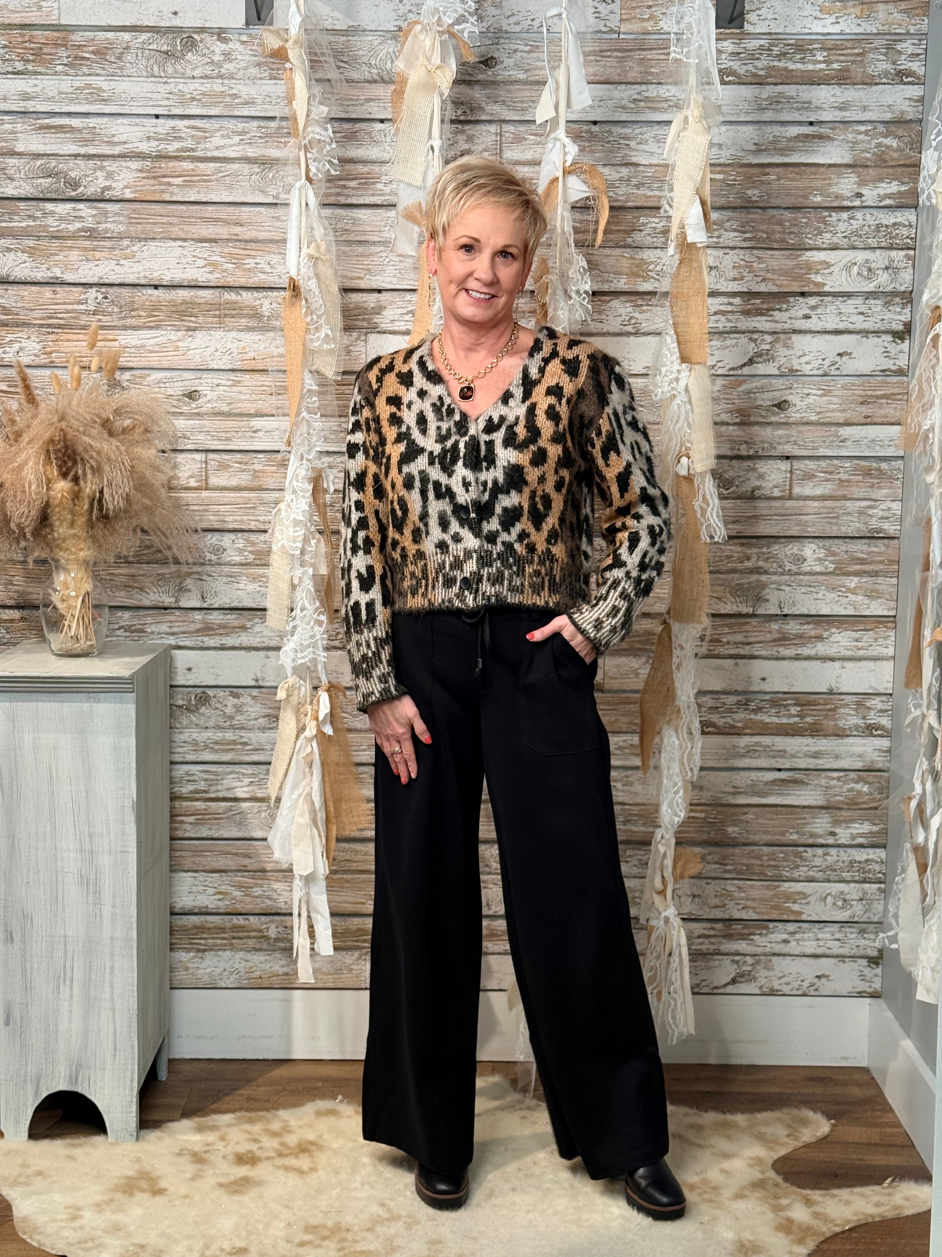 Women’s Textured Fringe Cardigan – Black and White Button-Front Sweater Jacket