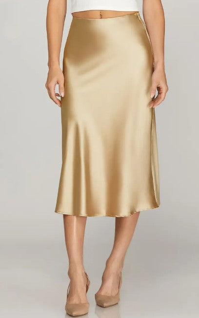 Champagne Satin Midi Slip Skirt