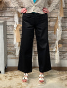 Edgy meets sophisticated in these coated black wide-leg crops. Designed with a 27" inseam, flattering high rise, and statement patch pockets, they bring just the right amount of shine to elevate your everyday looks. Dress them up with heels for a night out or keep it casual with sneakers for cool city vibes.