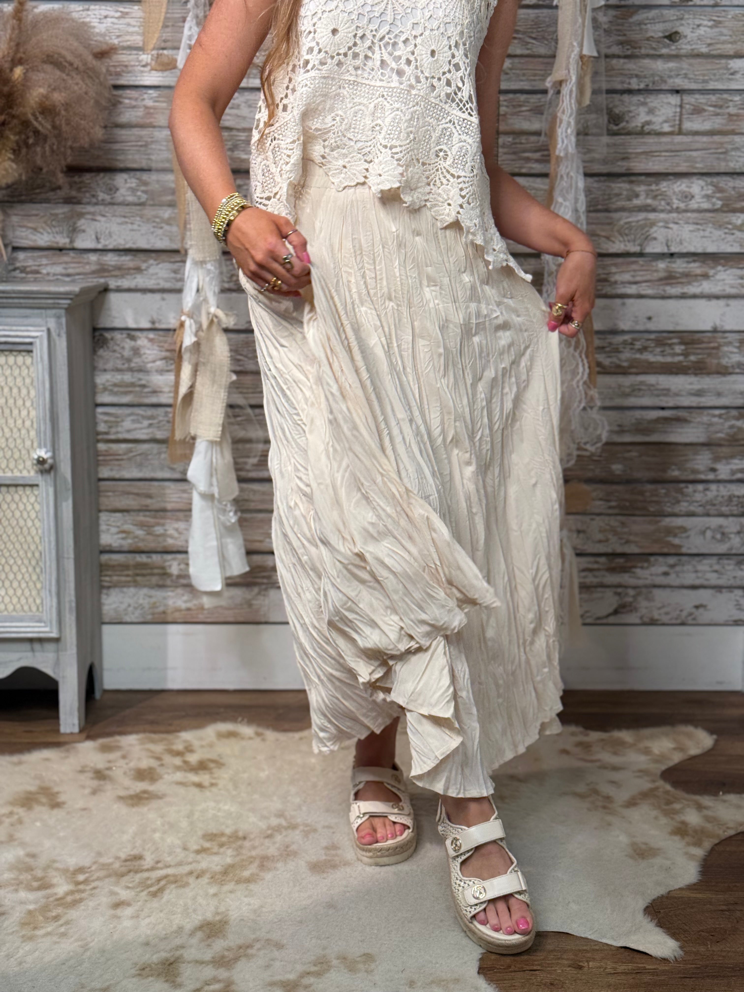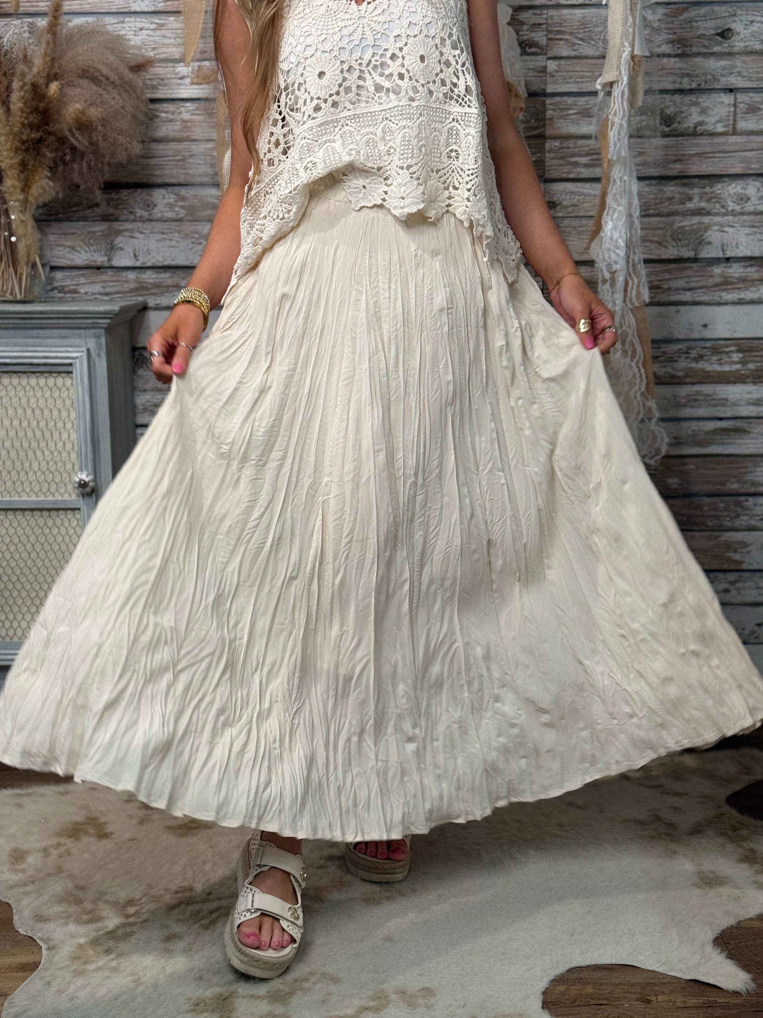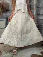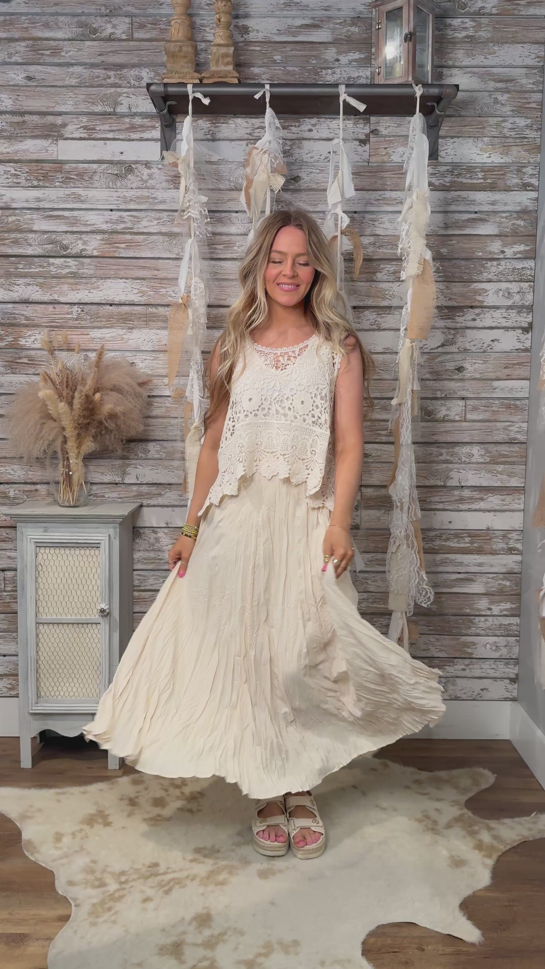 Effortless, elegant, and easy to wear, this crinkle flow maxi skirt features a soft, flowing silhouette with beautiful allover texture. Designed with lightweight fabric that drapes gracefully, it moves with you for a flattering, feminine look. The elastic waistband provides a comfortable, flexible fit, while the full-length design makes it perfect for dressing up or keeping it casual. Style it with sweaters, blouses, or tees for year-round versatility.