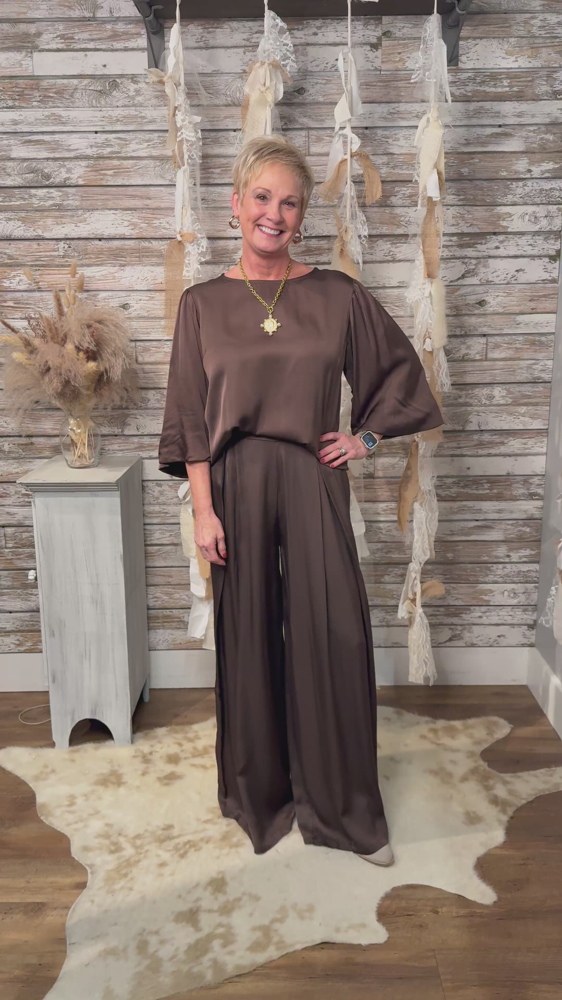 Gia Satin Pleat Front Wide pant