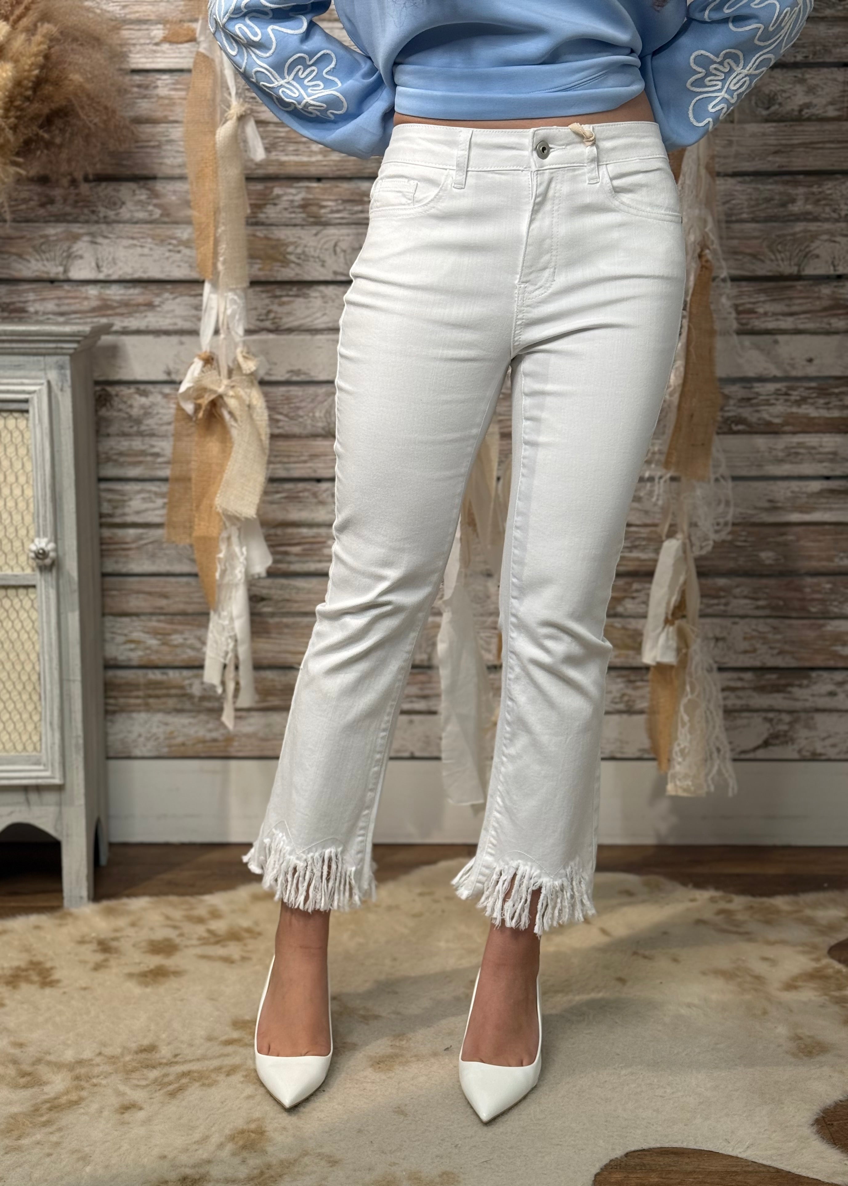 Ring-Spun Denim Bootcut Jeans with Fringe Hem
