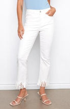 Add a playful edge to your denim collection with these ring-spun bootcut jeans featuring a statement fringed hem. Crafted from soft, durable ring-spun denim, they offer a comfortable feel with a flattering fit through the hips and thighs before gently flaring at the leg. The fringe detail at the hem adds movement and personality, making them perfect for dressing up with heels or styling casually with boots or sneakers. A modern twist on a classic silhouette, these jeans bring texture, charm, and standout style to any outfit.