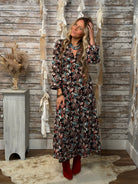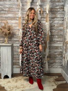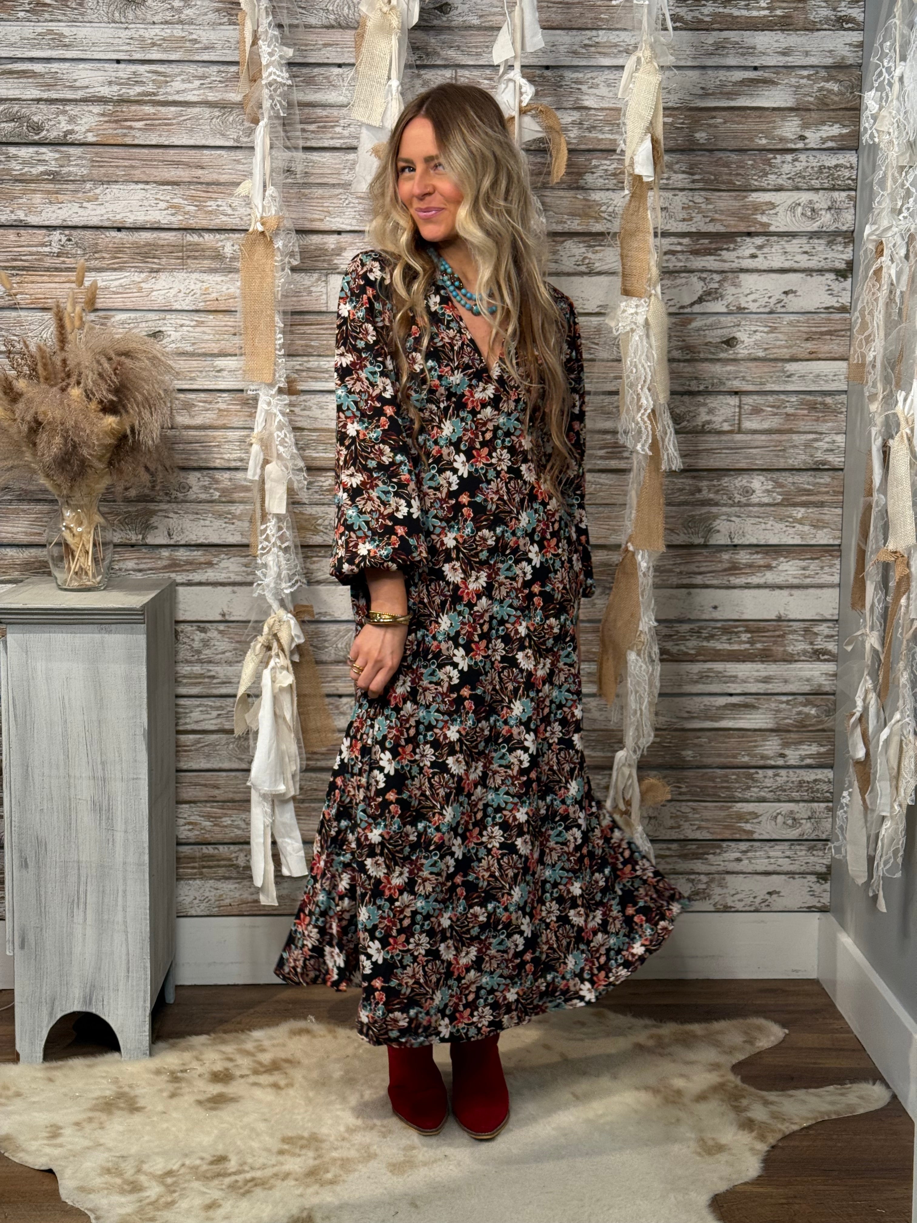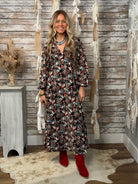 Romantic and effortlessly timeless, The Meadow Muse Midi Dress blooms with charm in a rich floral print that transitions seamlessly through the seasons. Featuring a soft V-neckline, flowy long sleeves with gentle gathering, and a relaxed A-line silhouette, this dress flatters every shape while offering all-day comfort. Pair it with suede boots for fall or heeled sandals for spring soirées — it’s a forever favorite that moves beautifully wherever you go.