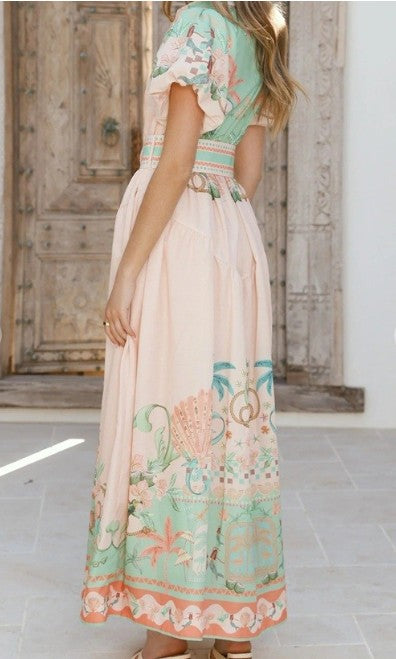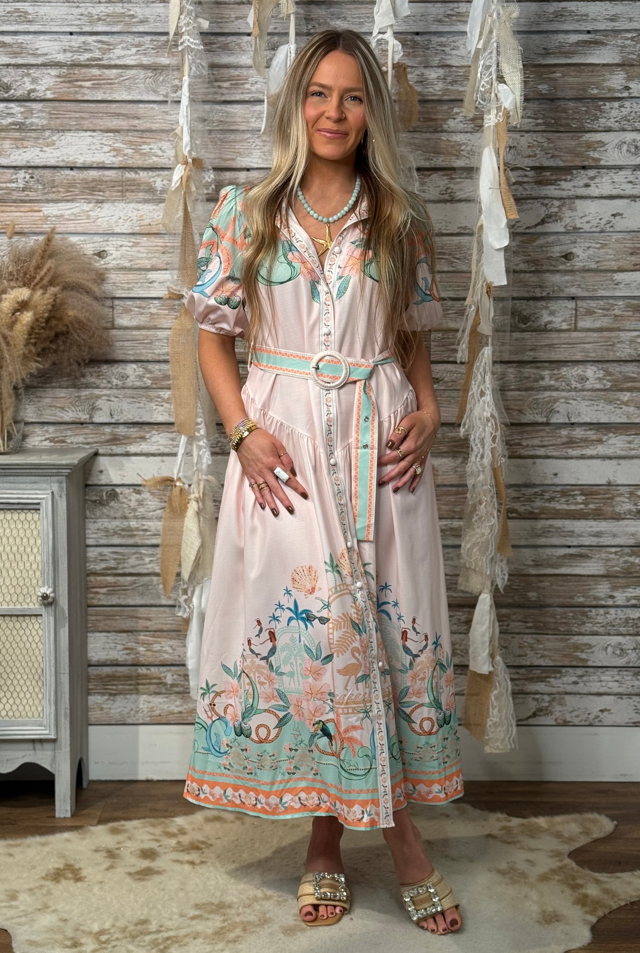 A matching belt cinches the waist for a flattering fit, and the lightweight fabric flows beautifully with every step. Perfect for vacations, brunch dates, summer weddings, or boutique events, this dress brings breezy sophistication to any occasion.