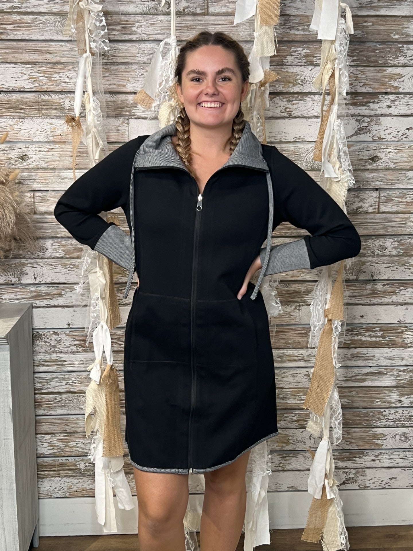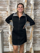 Two looks, one dress—your closet just doubled its style power. The Switch It Up Dress features a sleek high neck, functional two-pocket design, and a bold zipper detail that lets you reverse it for an instant outfit refresh. Whether you’re feeling polished and put-together or effortlessly cool, this versatile piece keeps up with your every mood. Style it with sneakers by day, boots by night, and let the compliments keep coming.