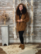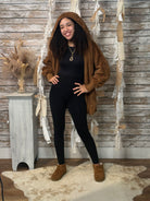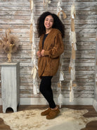 Wrap yourself in pure coziness with the Cocoa Cloud Teddy Coat. This open-front, oversized layer feels like a warm hug, thanks to its plush teddy texture and slouchy-chic silhouette. Ribbed cuffs add a touch of structure while roomy front pockets keep it practical. Perfect for tossing over jeans and a tee or snuggling up for a coffee run, this coat is the definition of comfy-meets-cute.