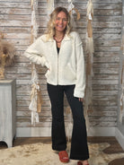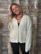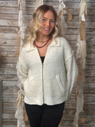 Cozy meets polished in The Aspen Zip Sweater Jacket. Designed with a soft knit finish, classic collar, and ribbed hem and cuffs, this versatile layer blends comfort with timeless style. The zip-front closure and handy side pockets add everyday ease, making it the perfect piece to throw on for a casual outing or layer up for a chic, cozy vibe.