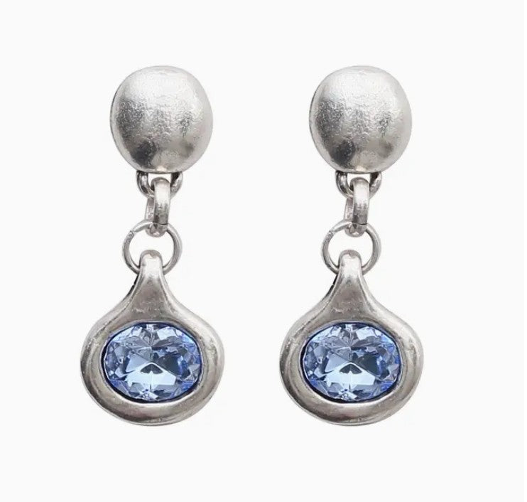Charming and timeless, the Bluebell Glow Drop Earrings feature soft blue crystals set in organic silver-tone teardrop frames. With their handcrafted finish and subtle swing, these earrings add a touch of serene sparkle to both casual looks and evening elegance.