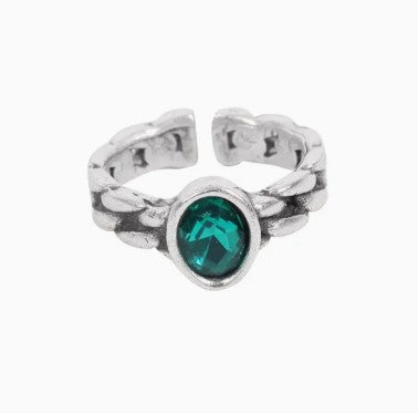 Timeless texture meets radiant color in the Braided Gleam Ring. Crafted with a woven antique silver band, this adjustable ring features a bezel-set crystal in your choice of rich sapphire or vibrant emerald. A perfect blend of bold and classic—wear it solo or stacked for extra sparkle.