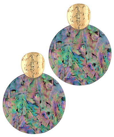 Drenched in dreamy iridescence and anchored by a hammered gold stud, these oceanic discs shimmer like a galaxy under the sea. With swirling hues of teal, violet, and midnight blue, they’re pure magic — the kind of accessory that makes your whole outfit feel like a vibe.