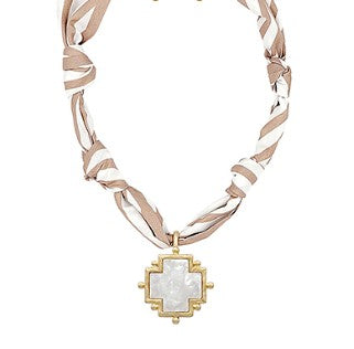 Elevate your everyday look with this Cross Pendant Stripe Scarf Necklace Set, a stylish blend of soft striped fabric and timeless metal accents. Featuring a statement cross pendant with acrylic detailing, this lightweight scarf necklace offers effortless style with a meaningful touch. Designed with an adjustable tie closure for a customizable fit, it’s comfortable enough for all-day wear.