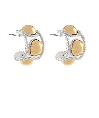 A stunning blend of modern art and cosmic elegance, the Luna Orbit Hoops feature a unique two-tone design with smooth gold domes framed by textured silver detail. Their sculptural shape and mixed-metal finish make them effortlessly chic — perfect for pairing with everything from denim to date-night dresses.