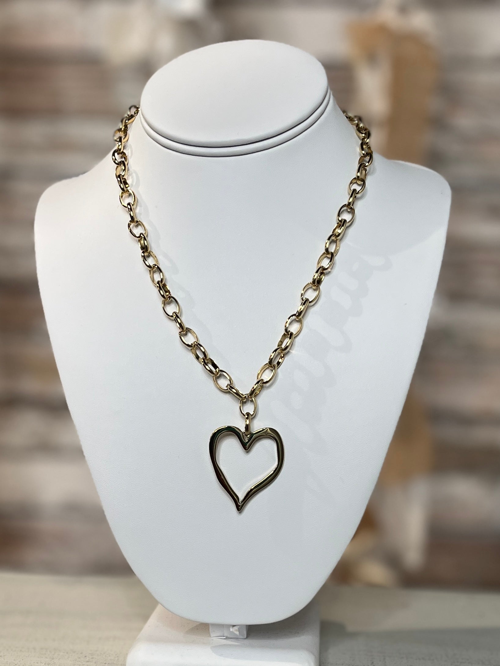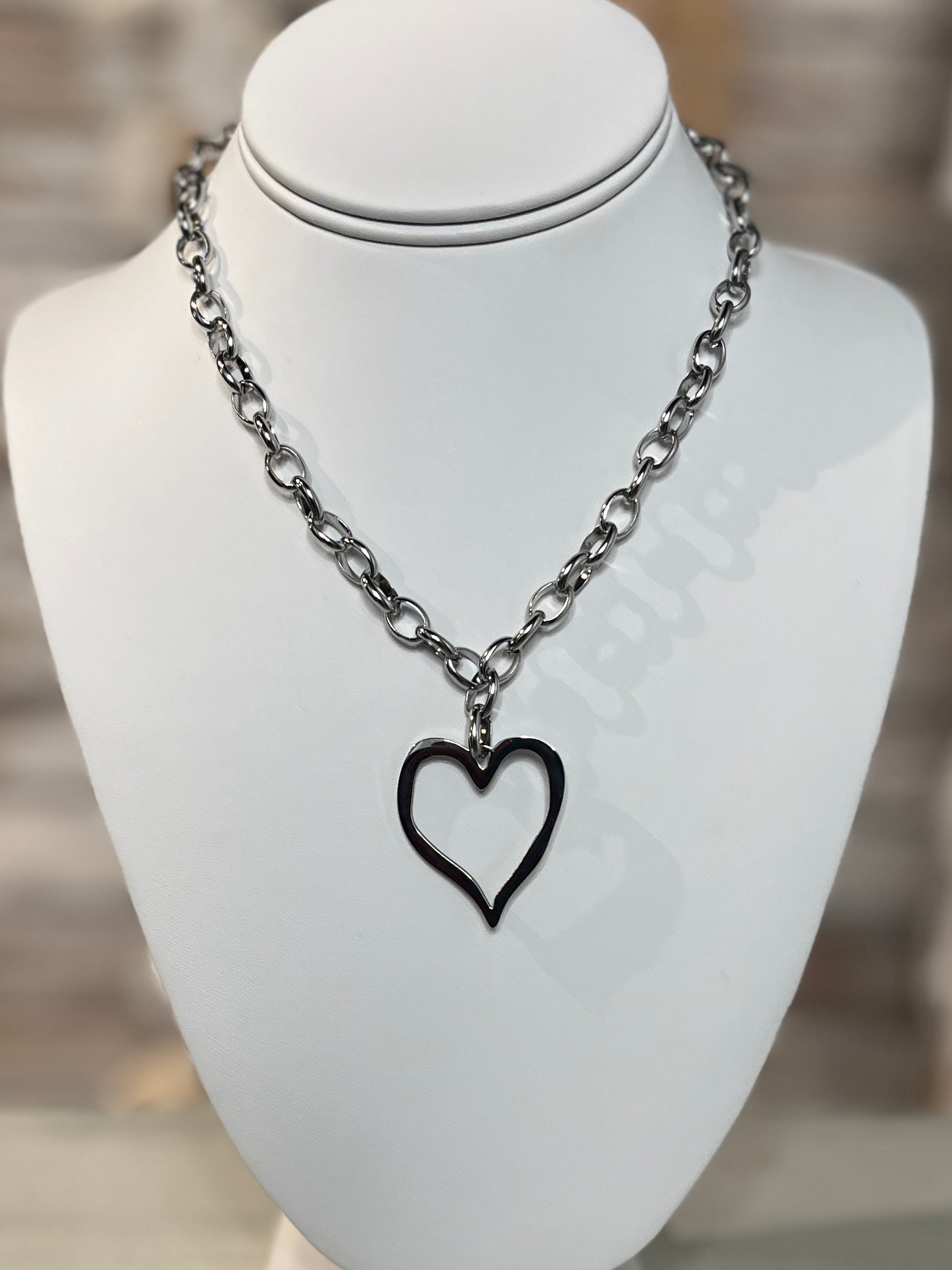 Show a little love with the Open Heart Chain Necklace—bold links paired with a sleek open-heart pendant for the perfect mix of modern edge and romantic charm. Available in classic silver or radiant gold, this versatile piece layers beautifully or stands strong on its own. Effortlessly cool, endlessly wearable—your new go-to for adding heart to any look.