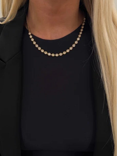 Radiant and refined, the Roxie Necklace is your new go-to for effortless glam. Featuring a delicate line of bezel-set crystals that catch the light with every turn, this timeless piece adds just the right amount of sparkle to elevate any look — from boardroom chic to evening allure. A modern classic you’ll reach for again and again.