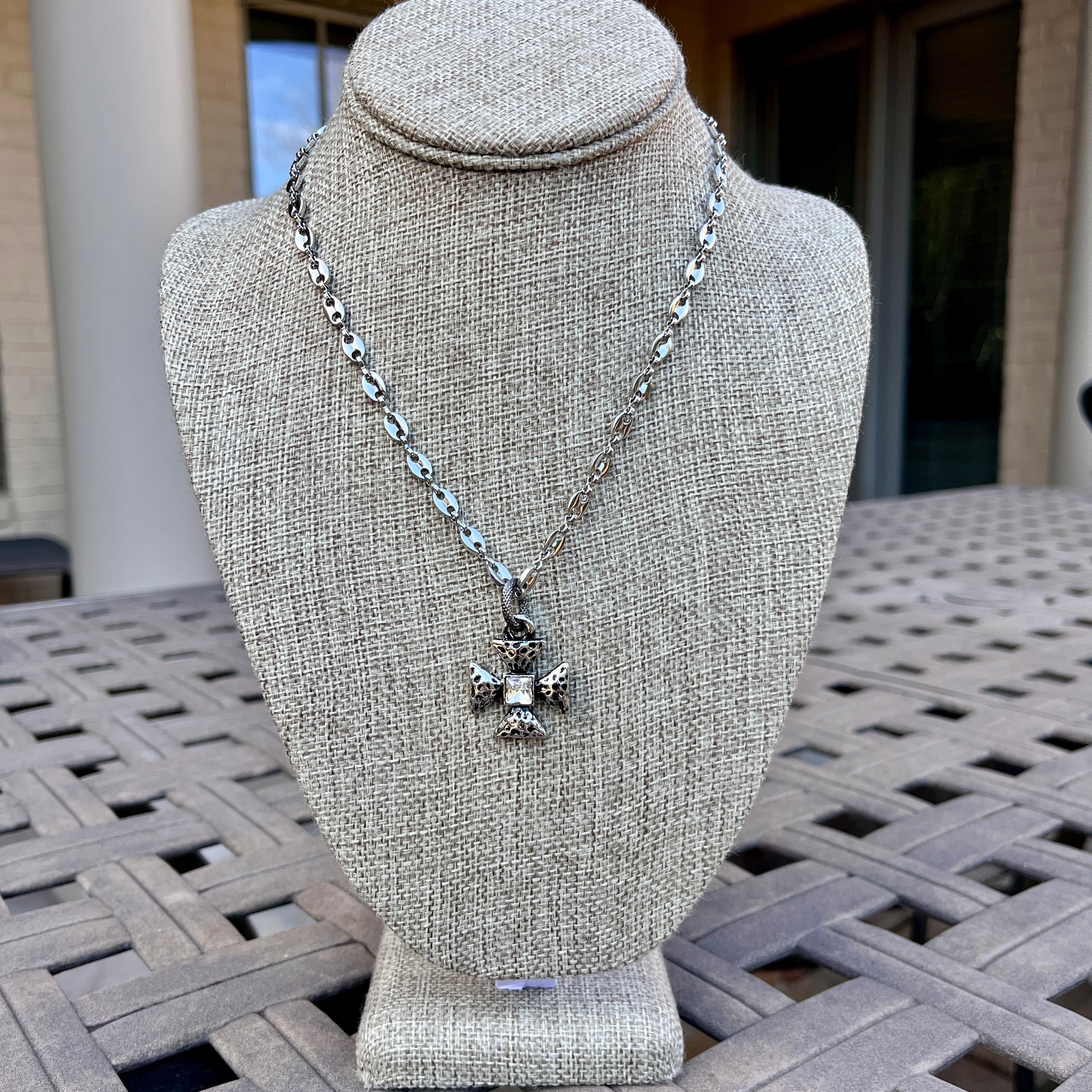 Silver oval chain w/ cross pendant. 17" w/ 2" ext.