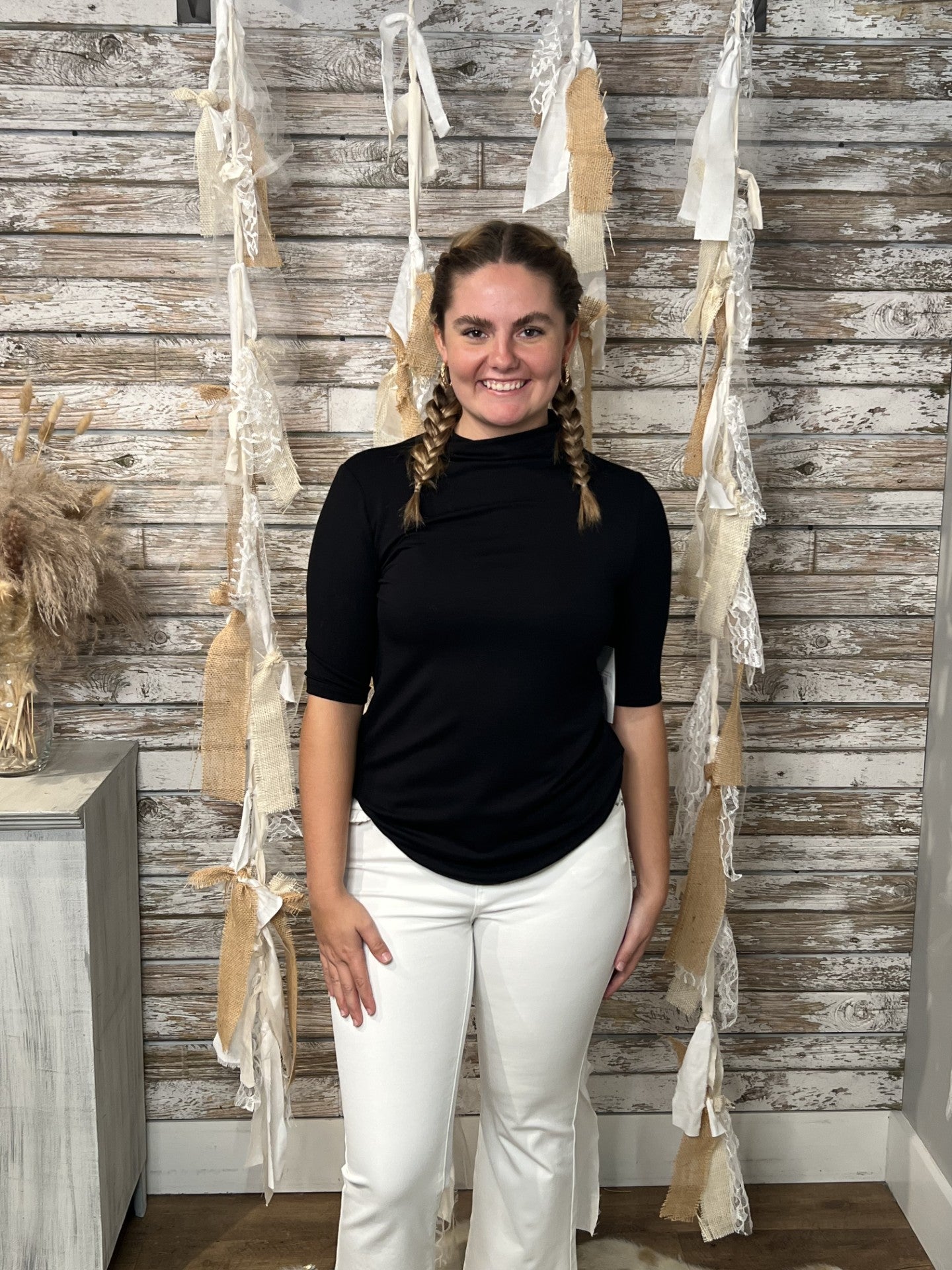 Timeless and refined, the Midnight Poise Funnel Neck Top is your new go-to for elevated everyday style. Featuring a sleek funnel neckline and flattering elbow-length sleeves, this knit piece offers just the right balance of structure and softness. Perfect for tucking into tailored trousers for office polish or pairing with denim for a modern casual vibe, it’s a versatile staple that transitions with ease from day to night.