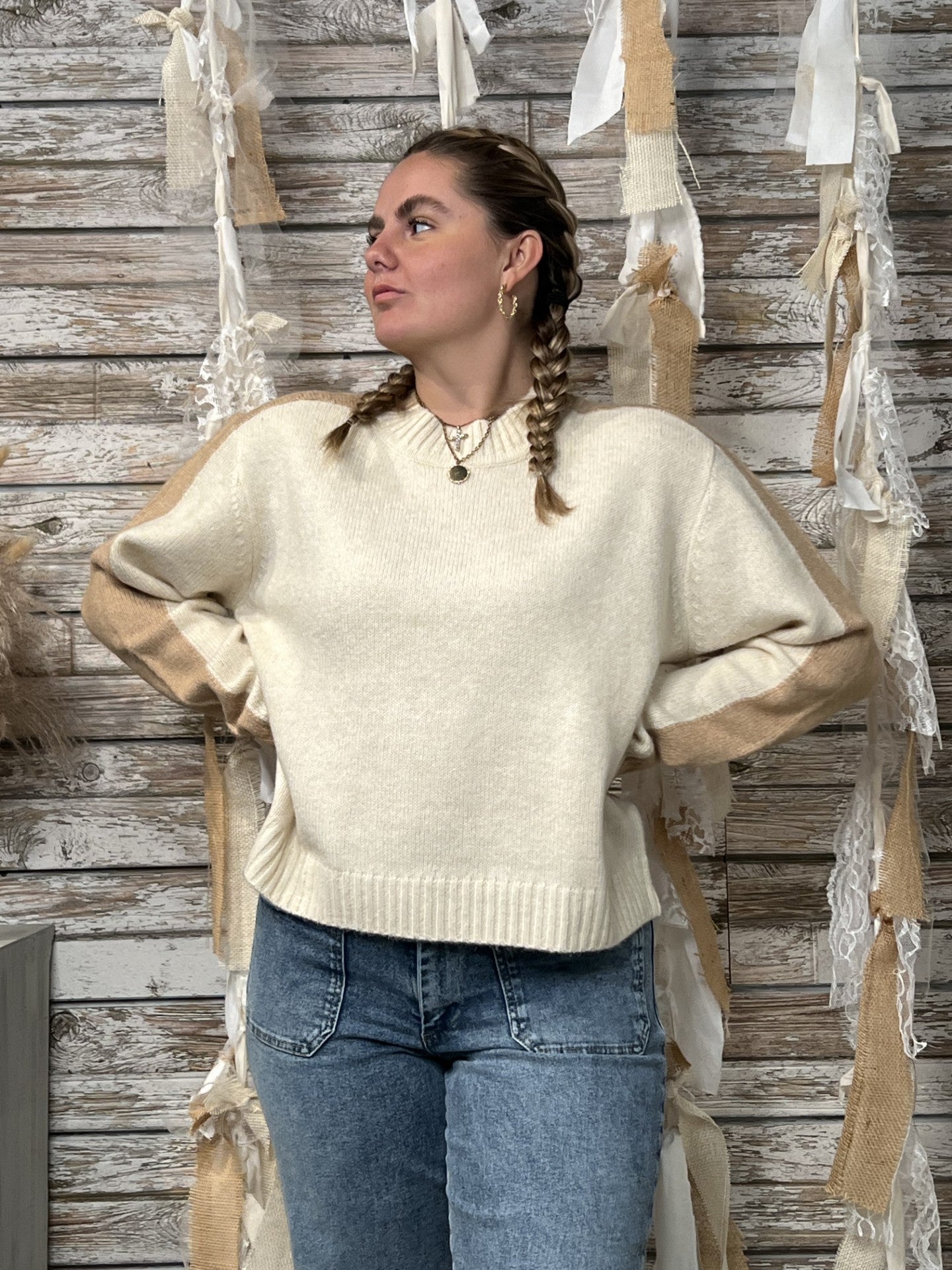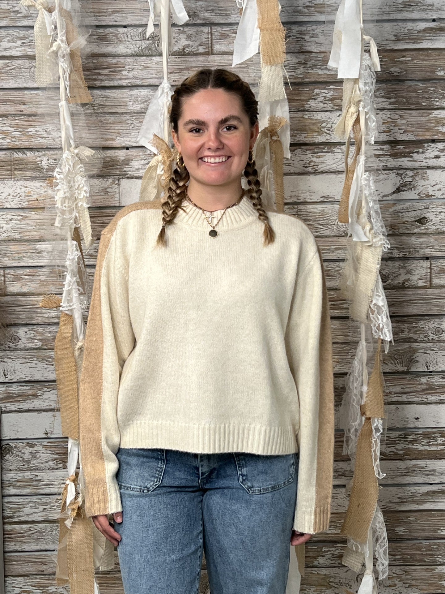 Effortlessly sleek with a modern twist—the Side Line Chic Sweater is where cozy meets contemporary. Crafted in a soft neutral knit, this sweater features a classic crew neckline and relaxed silhouette, elevated by a bold tonal stripe running down the sleeve for just the right pop of contrast. Perfectly versatile, it pairs seamlessly with denim for casual days or can be dressed up with leather skirts and boots for a polished edge. A timeless piece with that subtle statement factor.
