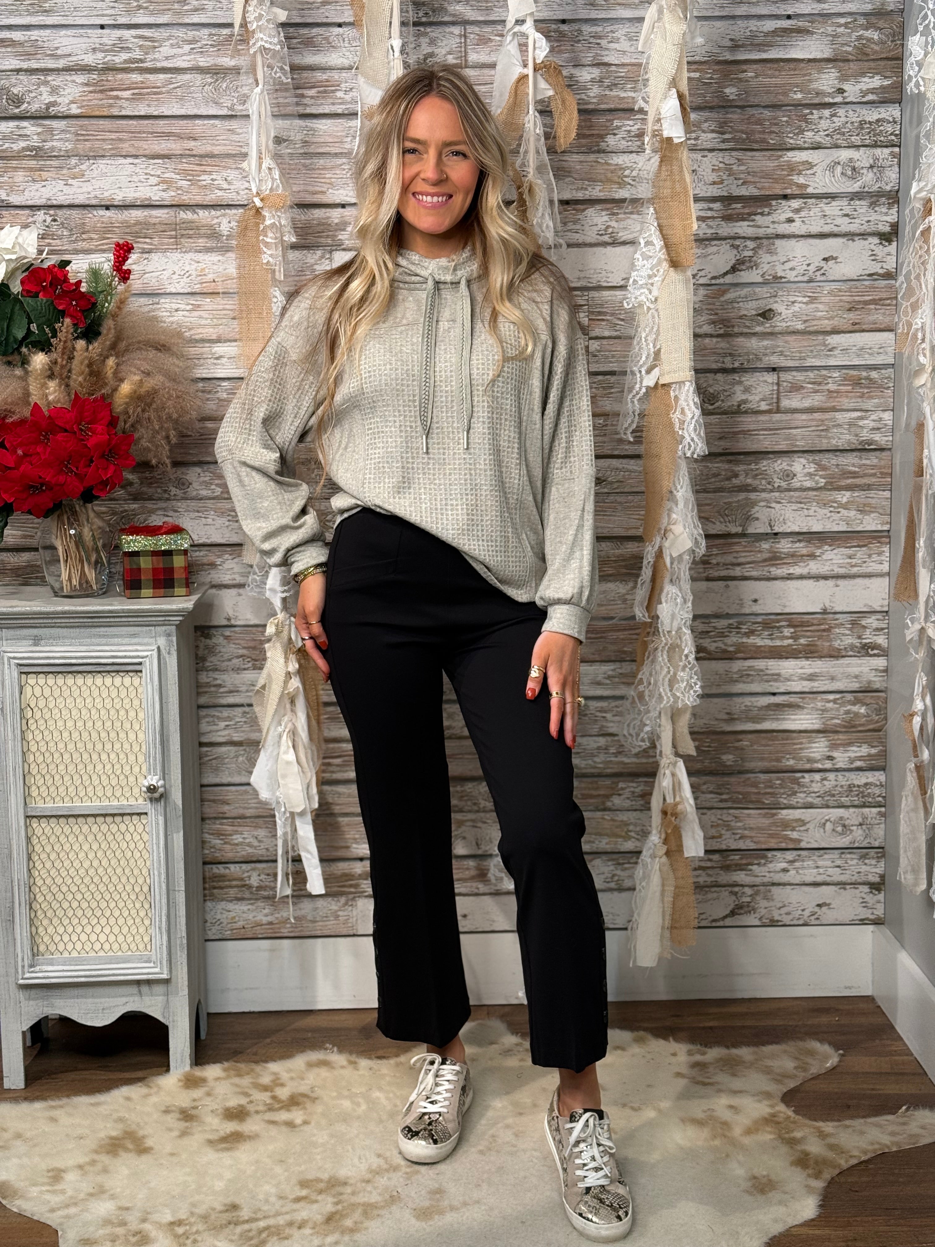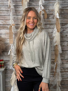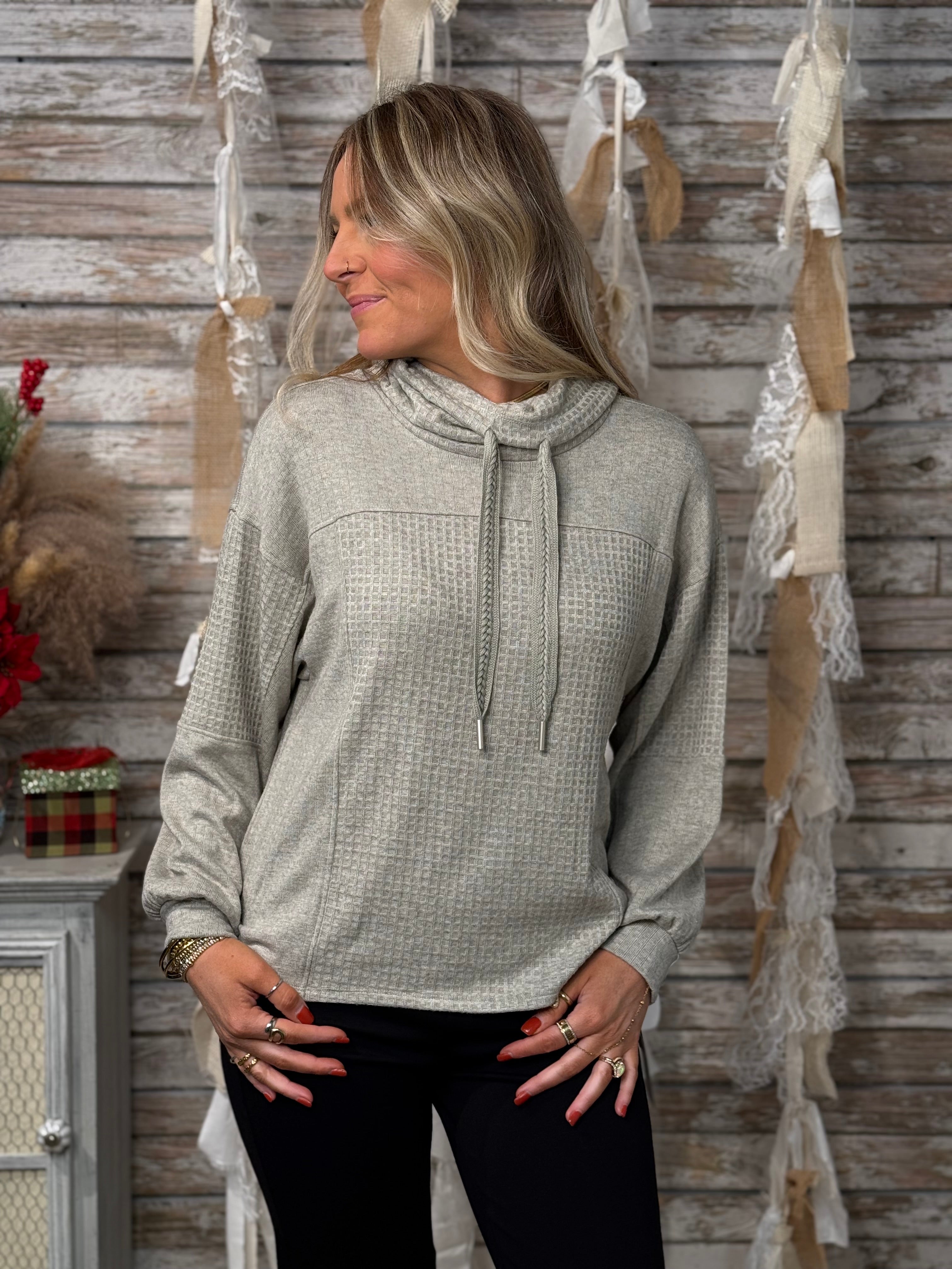 Stay cozy and effortlessly chic in this cowl neck mixed media knit top featuring soft blouson sleeves and stylish tie details. The relaxed silhouette drapes beautifully, while the textured mixed-media knit adds depth and dimension. Perfect for cool-weather layering, the cowl neckline provides warmth and a flattering frame for the face, with ties you can leave loose or lightly cinch.