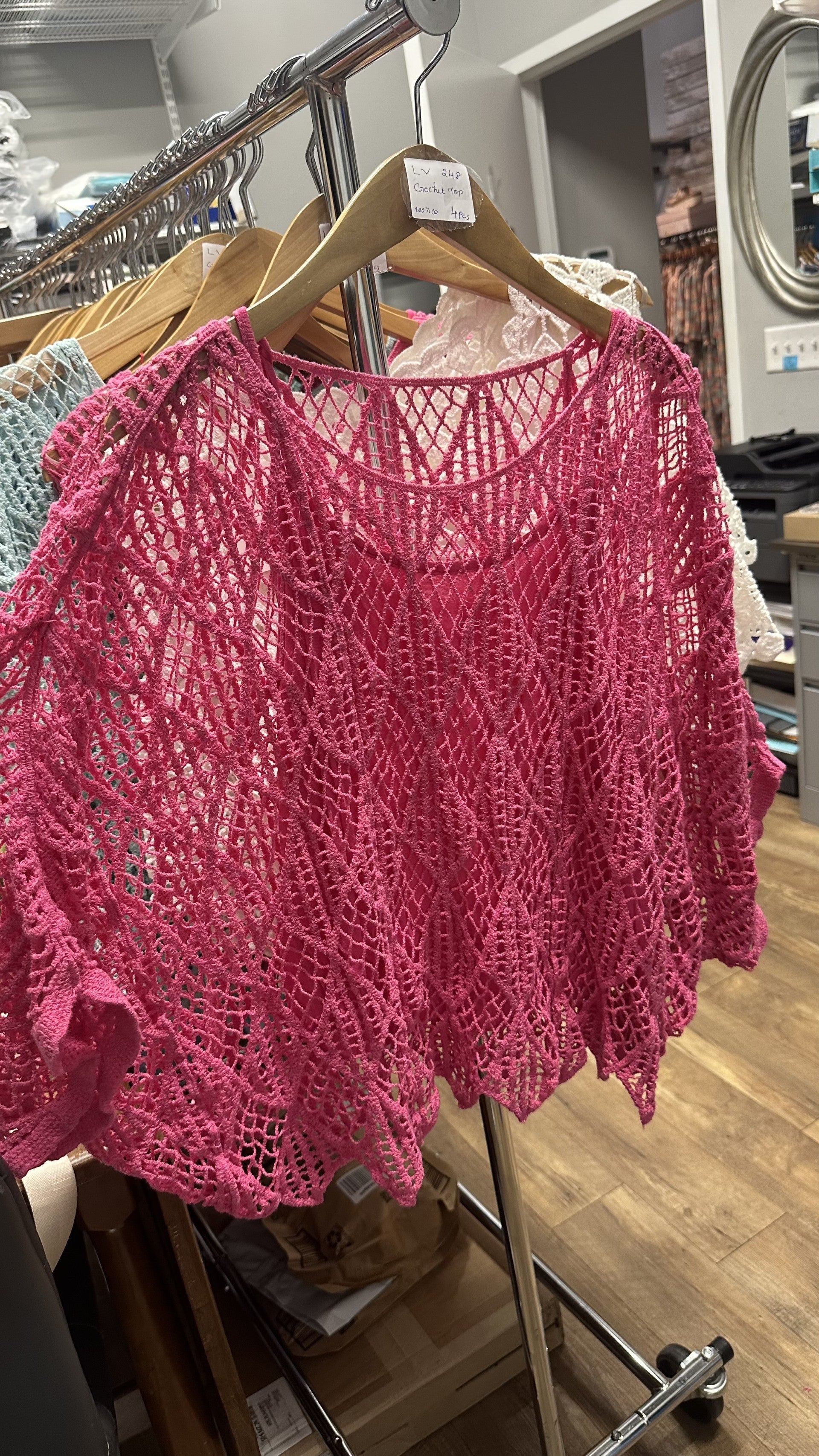 Elevate your style with this airy boho-chic crochet top, featuring an intricate open knit and a feminine scalloped hem. This effortless two-piece set includes a matching tank for perfect, ready-to-wear layering and all-day comfort.