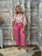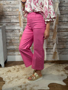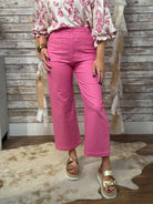 Turn up the contrast in these cropped wide leg pants featuring standout white stitching. With front patch pockets and a flattering high-rise fit, they bring a modern edge to everyday comfort—perfect for pairing with everything from sneakers to sandals.