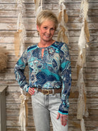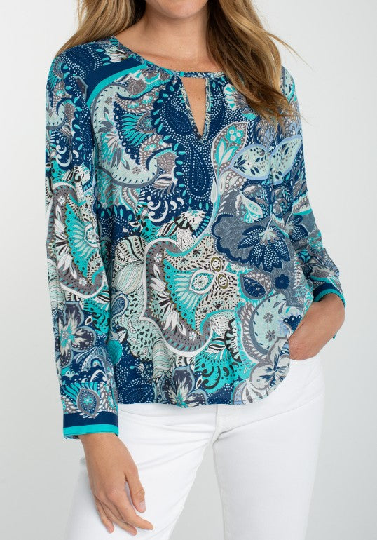 Coastal Muse Long Sleeve Paisley Print Top with Keyhole Neckline