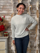Effortlessly cozy with a touch of elevated detail, this mock neck mixed media knit top is the perfect blend of comfort and polish. The soft knit body pairs beautifully with subtle mixed-media accents, while the embroidered front detail adds a refined, boutique-inspired finish. A relaxed silhouette and hi-low hem offer easy movement and flattering coverage, making it ideal for everyday wear.