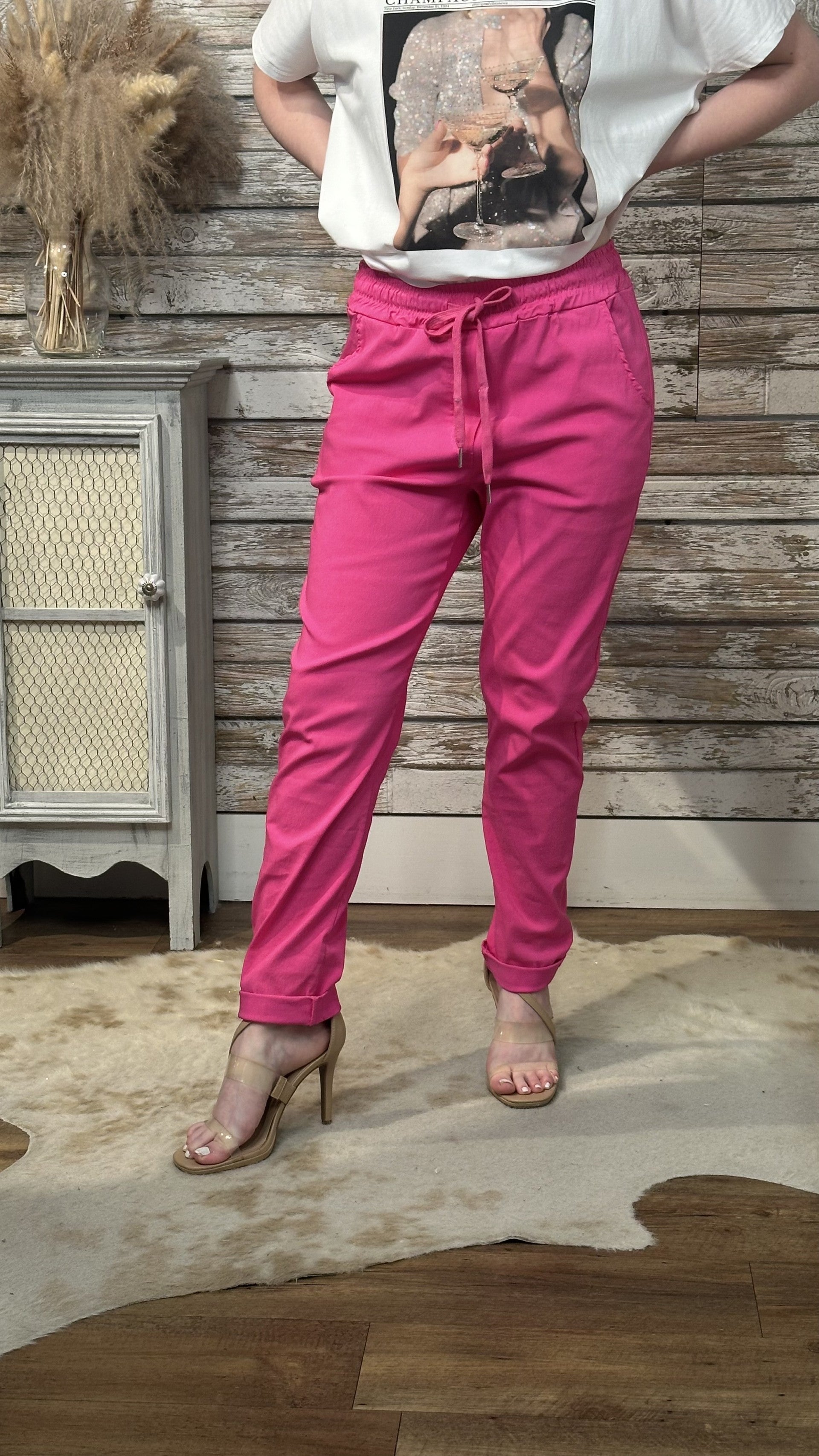 Experience the viral "magic" stretch fabric that contours perfectly to your body for a flawless fit. These vibrant hot pink joggers combine effortless boutique style with all-day flexibility, taking you from casual errands to a night out in total comfort.