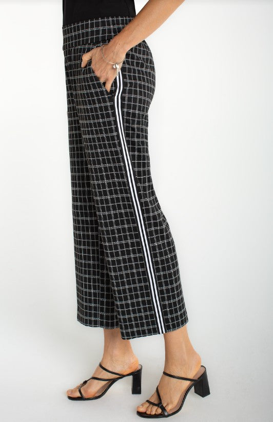 Meet the pants that do it all—the Mabel Pull-On Cropped Stovepipe Pants with Side Stripe. Designed with a comfortable pull-on waistband, these polished yet easy pants feature a modern stovepipe silhouette and a chic cropped length. The subtle grid pattern adds visual interest, while the contrast side stripe brings a sporty-meets-sophisticated edge. Finished with functional pockets and a flattering fit, these pants pair perfectly with blazers, sweaters, or casual tees for workdays, weekends, and everything in between.