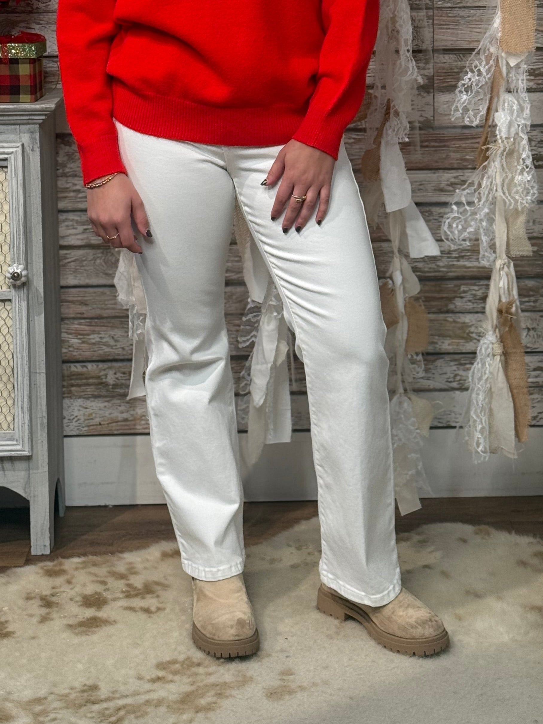 The Lucy High-Rise Bootcut Jeans are a timeless staple with a flattering, everyday fit. Designed with a high-rise waist and a classic bootcut silhouette, these jeans elongate the legs while offering comfortable structure and stretch. The clean, crisp finish makes them easy to dress up with heels or keep casual with sneakers. Finished with a 30” inseam, five-pocket styling, and a smooth, polished look, Lucy is your go-to jean for workdays, weekends, and everything in between.