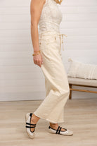 Mac & Me Skyrise Wide Leg Drawstring Jeans with Frayed Hem
