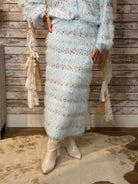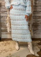 Channel effortless Parisian chic with The Sonata Skirt, a bold midi pencil silhouette crafted in luxurious stretch knit with feathered texture. The ultra-soft faux feather fabric feels as cozy as it looks, while subtle multicolor stripes add a playful touch of flair. Designed with a flattering high waist and timeless midi length, this skirt brings sophistication and whimsy into perfect harmony.