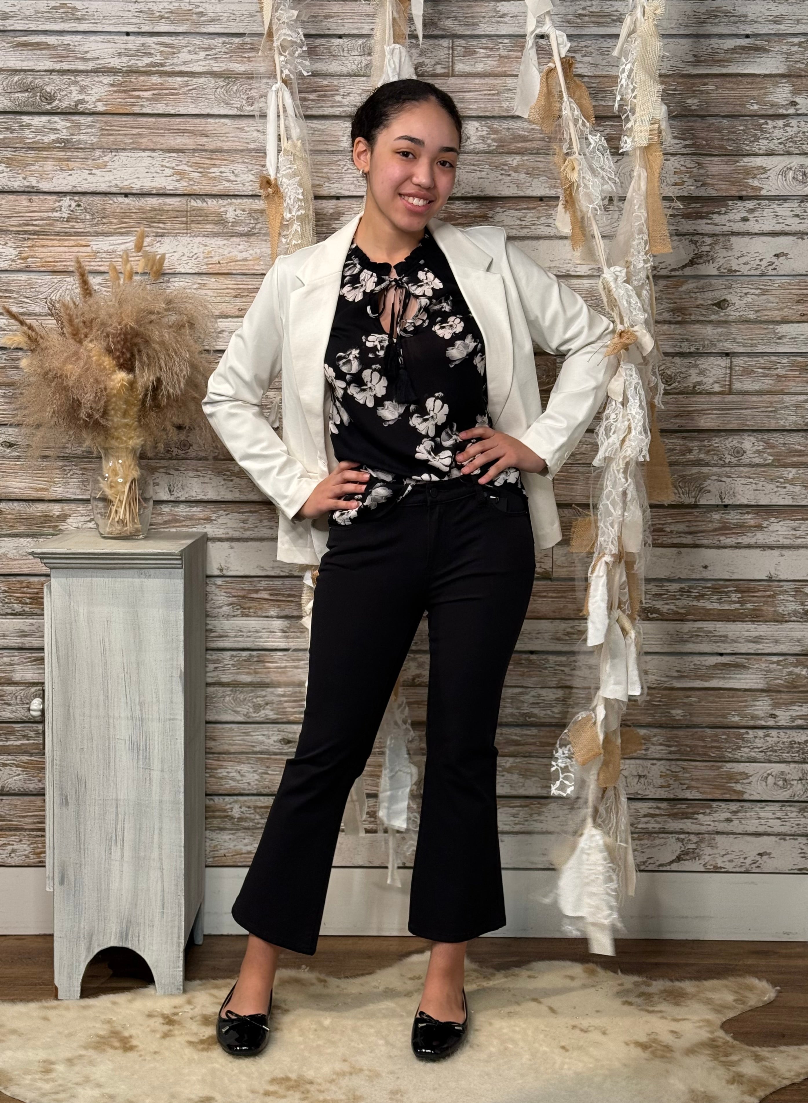 This women’s white one-button blazer is the perfect blend of polished style and everyday comfort. Designed in a soft stretch knit fabric, it offers a clean, tailored look without feeling stiff or restrictive. The single-button closure and notched lapels create a classic silhouette that pairs effortlessly with trousers, denim, dresses, or shorts.