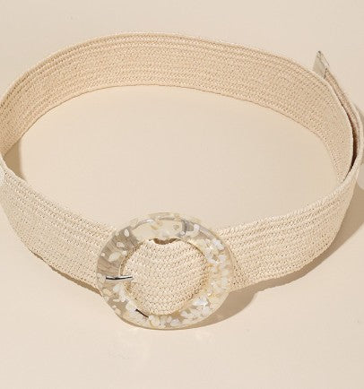Elevate your summer style with the Boho Bloom Buckle Belt – a laid-back yet chic accessory crafted from woven straw for that perfect touch of earthy texture. Featuring a standout resin round buckle in marbled or multicolor finishes, this belt adds bohemian flair to flowy dresses, high-waisted shorts, or breezy skirts. Available in neutral beige, classic khaki, and a fun multicolor weave, it's your go-to piece for effortless warm-weather styling.