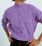 Soft, cozy, and effortlessly chic — the Lavender Drift Cable Sweater wraps you in warmth with a dreamy pop of color. Featuring a modern cable-knit design and plush texture, this lilac beauty boasts a stand-up collar, ribbed edges, and a relaxed straight fit that flatters every figure. Perfect for layering over your favorite skirt or pairing with denim for a polished yet laid-back look.