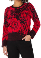 Make a statement with this eye-catching floral sweater, where bold crimson blooms pop against a dark backdrop. Soft, cozy, and designed with a classic crew neckline, it’s the perfect mix of comfort and drama. Pair it with denim for everyday flair or dress it up with black trousers for a night-out look that turns heads.