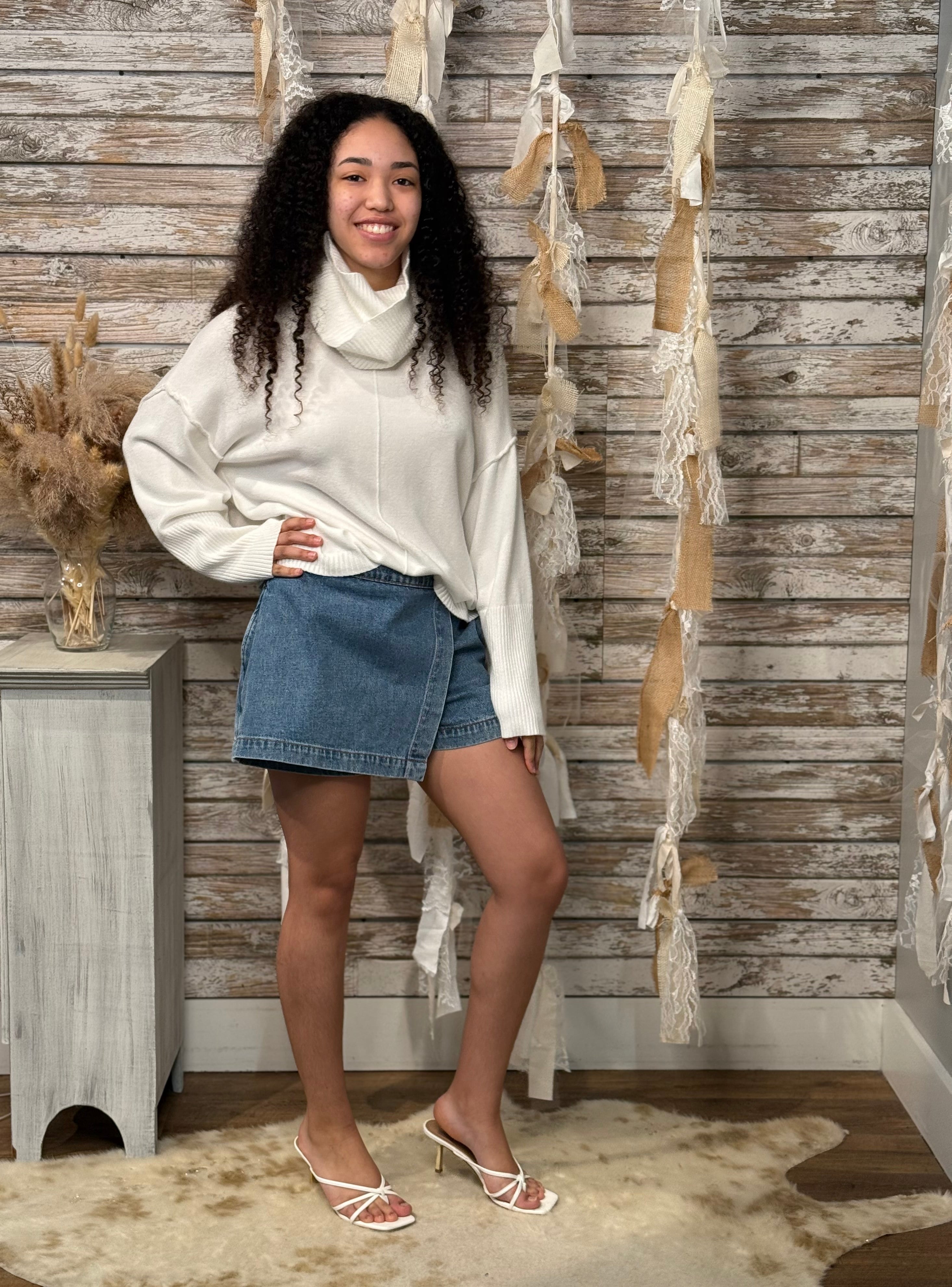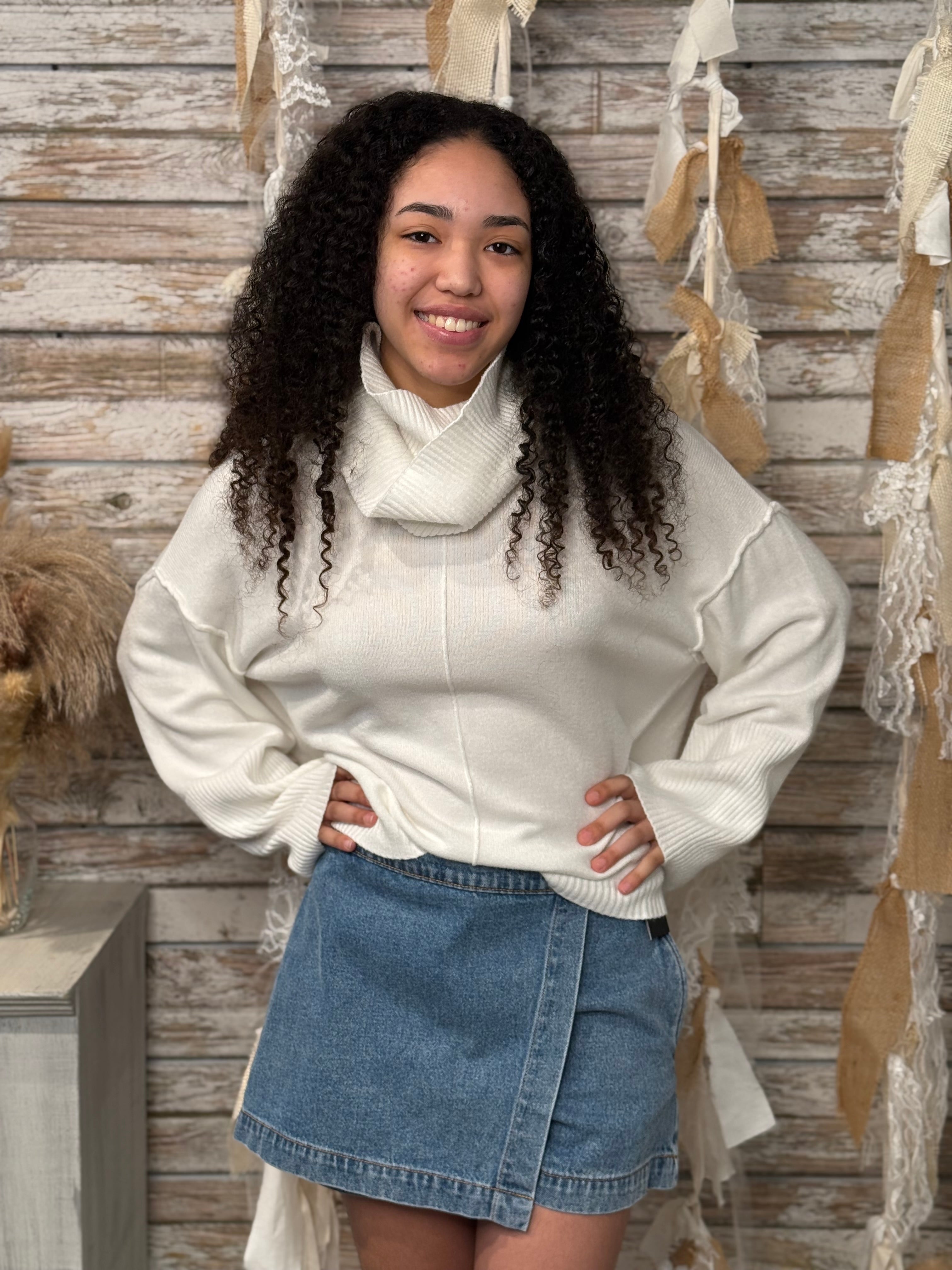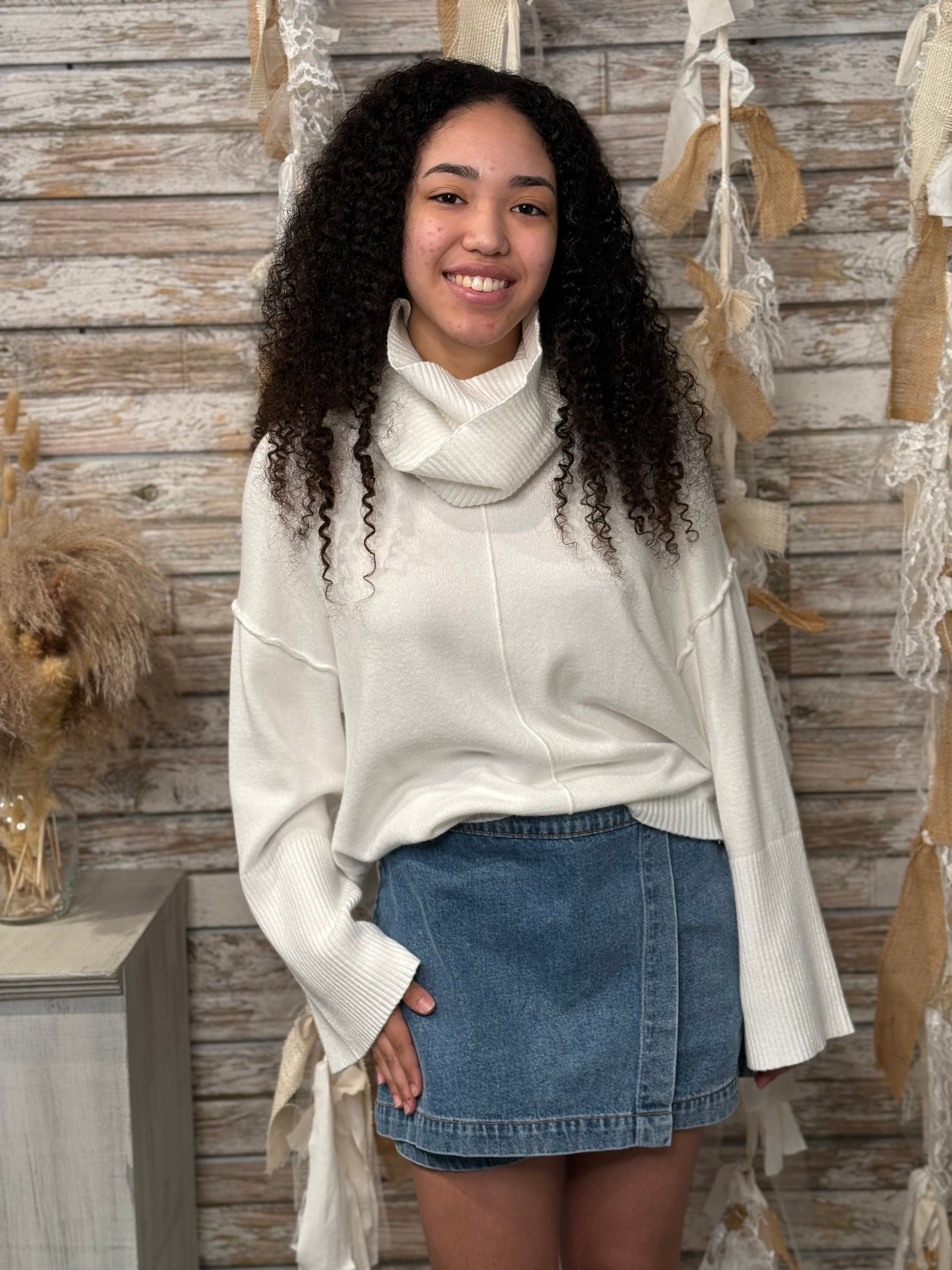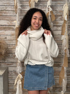 Enjoy effortless style with this Snowfall Rib Sweater with removable cowl neck. Its relaxed fit ensures all-day comfort, while the attached snood adds a fun, playful twist and extra warmth. Perfect for casual days, this versatile sweater keeps you cozy and stylish in one easy-to-wear piece. The