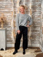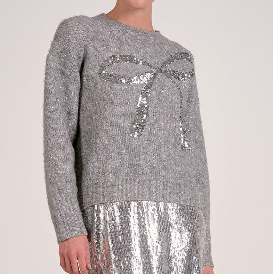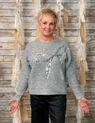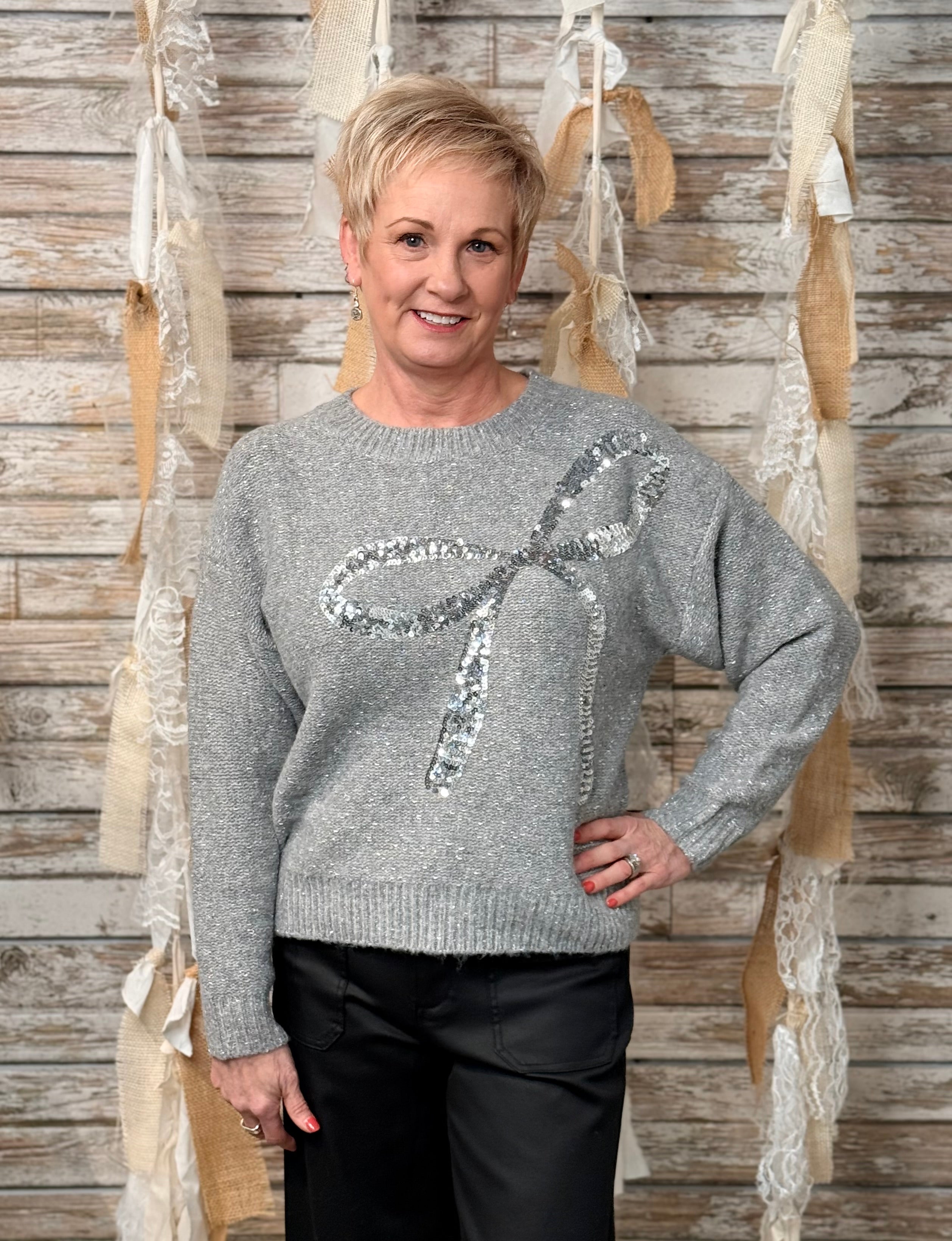 Wrap yourself in charm with the Twinkle Bow Knit Sweater, where cozy meets celebration. This heathered grey knit is adorned with a statement sequin bow across the front—delivering just the right amount of festive sparkle without feeling over the top. The soft-touch fabric, relaxed silhouette, and ribbed trim make it ideal for both lounging in style and stepping out in seasonal shimmer.