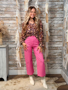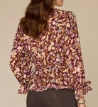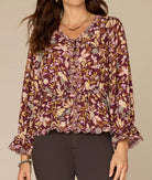 Romantic and effortlessly flattering, the Berry Bloom Peplum Blouse adds a feminine touch to your fall wardrobe. Designed in a rich pickled beet multi floral print, this woven top features scalloped embroidery along the V-neckline, a soft peplum hem, and ruffled sleeve cuffs with adjustable ties for added charm.