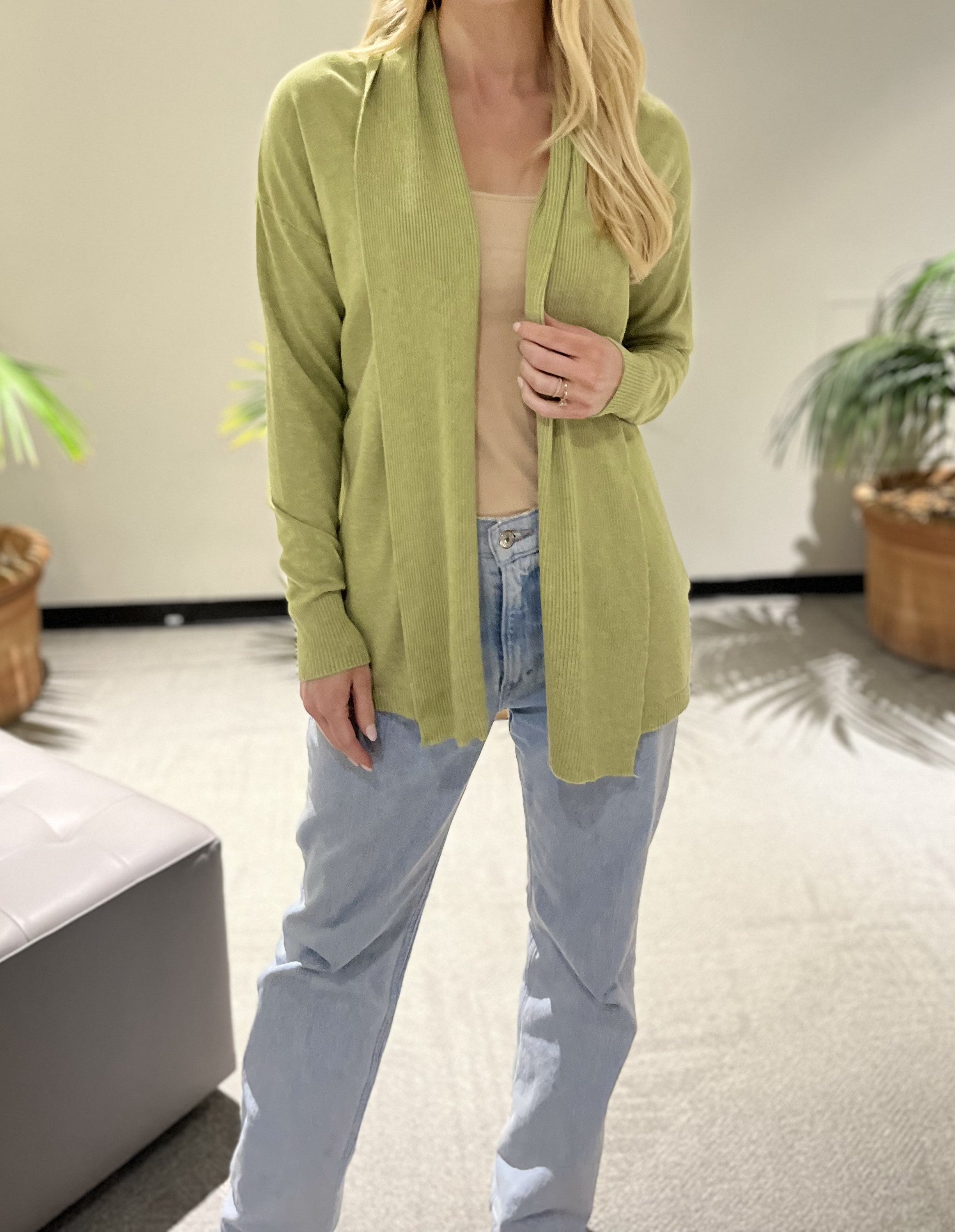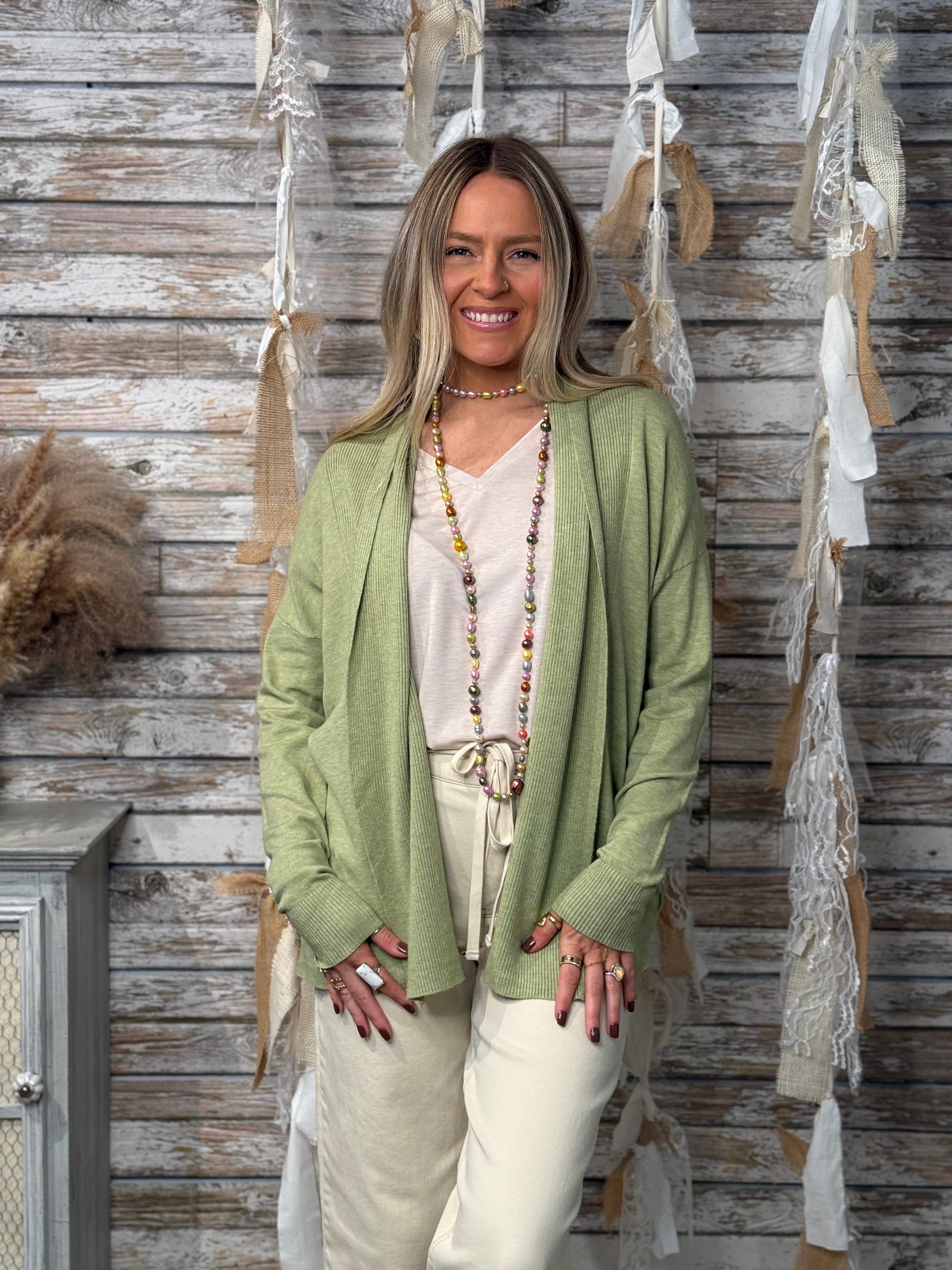 Lightweight yet warm, it’s ideal for layering over tees, tanks, and long sleeves, making it a staple for both cool mornings and chilly evenings. Whether you're heading out or staying in, this timeless cardigan adds warmth, comfort, and effortless style to your everyday wardrobe.