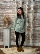 Polish your look with the Five Star Standout Tunic! Featuring a chic high neckline and a row of five statement buttons, this tunic blends structure with sophistication. Its tailored silhouette makes it versatile enough to dress up for the office or throw on casually for elevated everyday style. A timeless layer with just the right touch of modern edge.