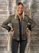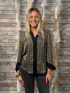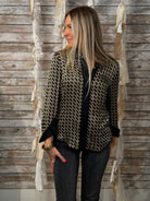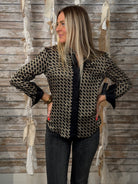 Elevate your everyday with the Linked Luxe Button-Up, featuring a striking chain-inspired print framed by a sleek solid placket. Crafted in a smooth woven fabric with a tailored fit, this long-sleeve shirt blends timeless polish with a modern edge for desk-to-dinner versatility.