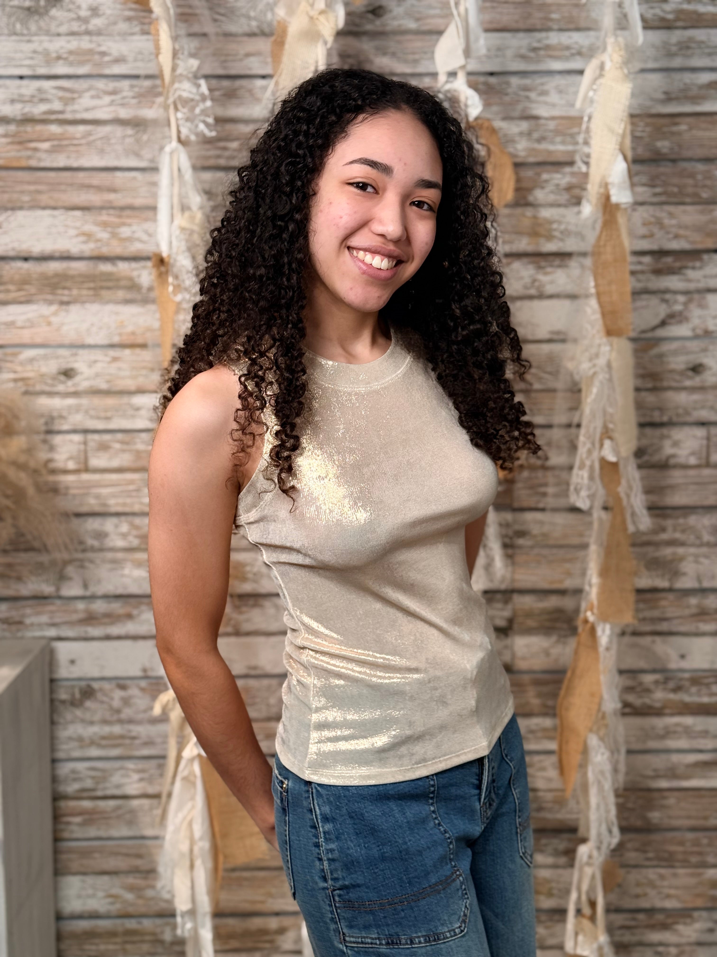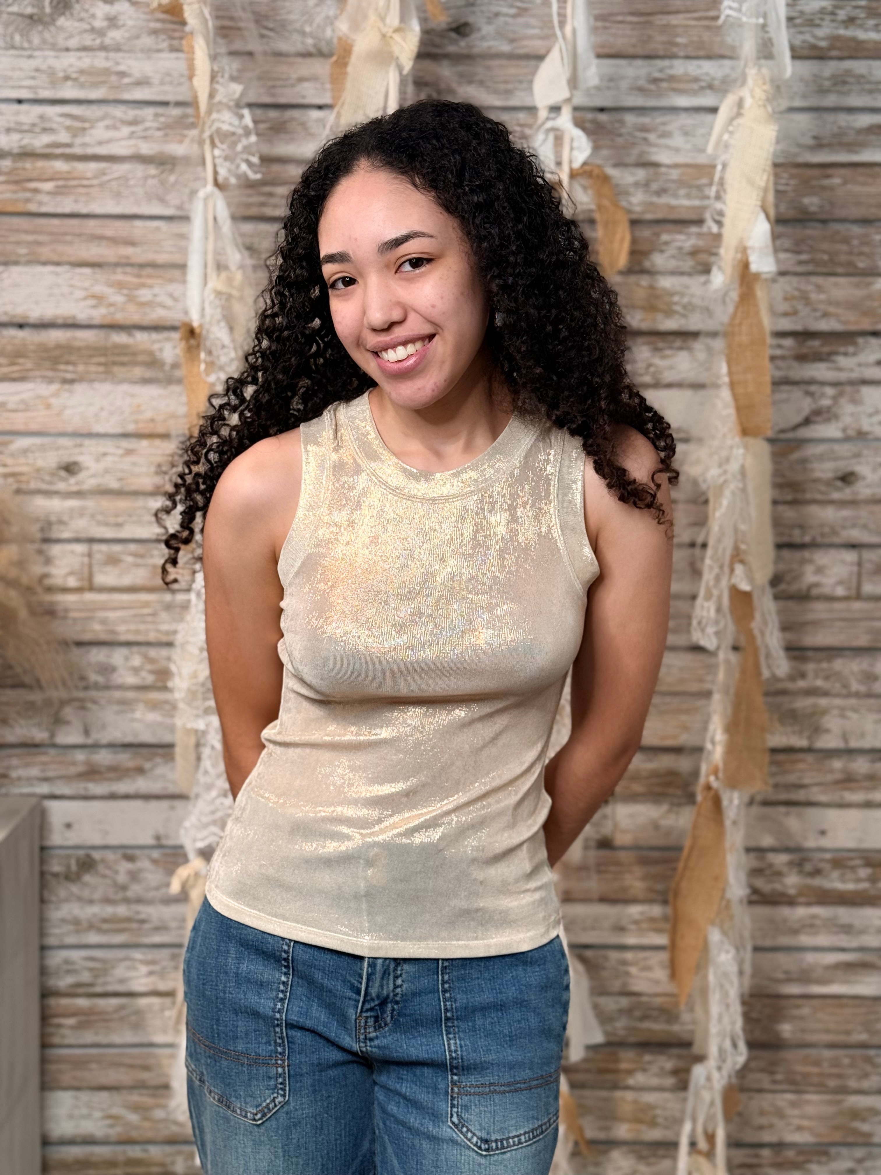 Bring subtle allure to your wardrobe with the Lustrelight Holiday Tank in crisp white. This sleeveless stunner features a lightweight fabric with a luminous, almost ethereal sheen that catches the light in all the right ways. Designed with a sleek high neckline and form-fitting cut, it offers a refined silhouette that layers beautifully or stands confidently on its own.