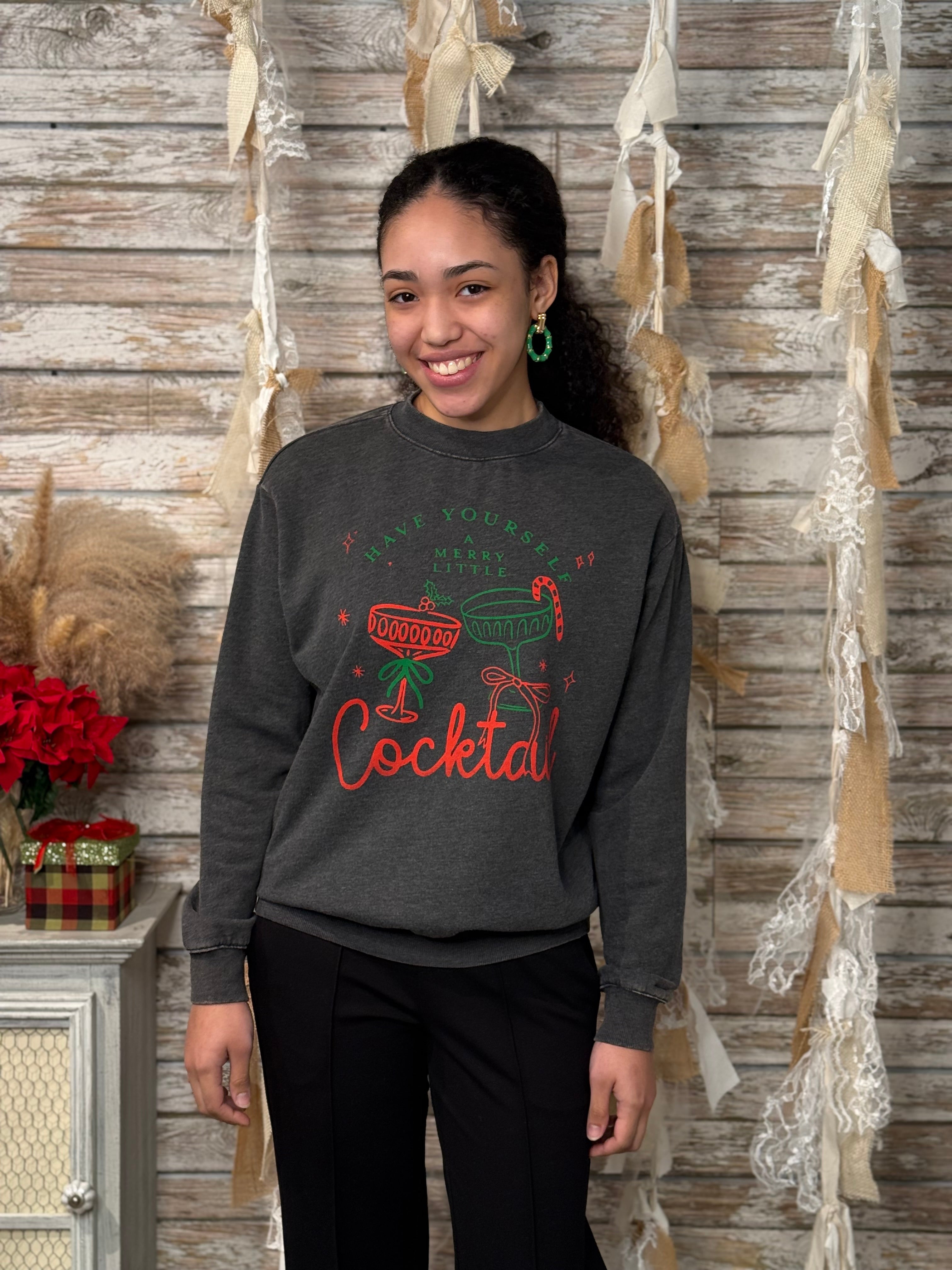 Merry Little Cocktail Mineral Wash Holiday Sweatshirt