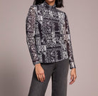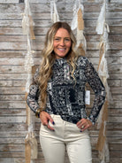 Turn heads with the Midnight Mosaic Mesh Top—a statement piece that blends edgy detail with elegant ease. Designed in a patchwork-inspired floral print, this mesh turtleneck features a lightweight sheer overlay with built-in lining for the perfect balance of coverage and style. The slim silhouette makes it ideal for layering under blazers or pairing with high-rise denim for a chic, night-out vibe. Effortlessly bold, endlessly versatile.